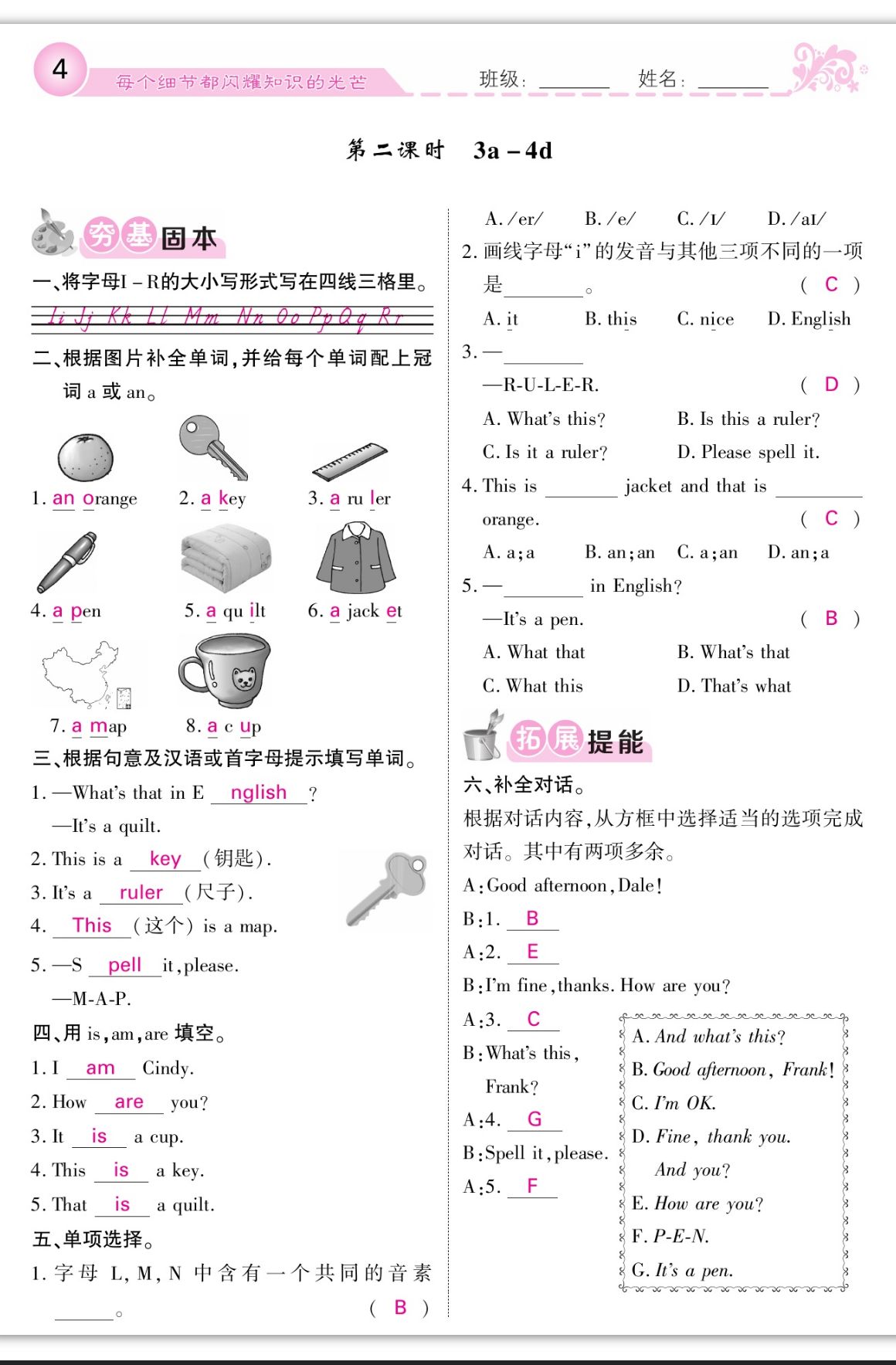 注:目前有些书本章节名称可能整理的还不是很完善,但都是按照顺序排列的,请同学们按照顺序仔细查找。练习册 2023年课堂点睛七年级英语上册人教版 答案主要是用来给同学们做完题方便对答案用的,请勿直接抄袭。