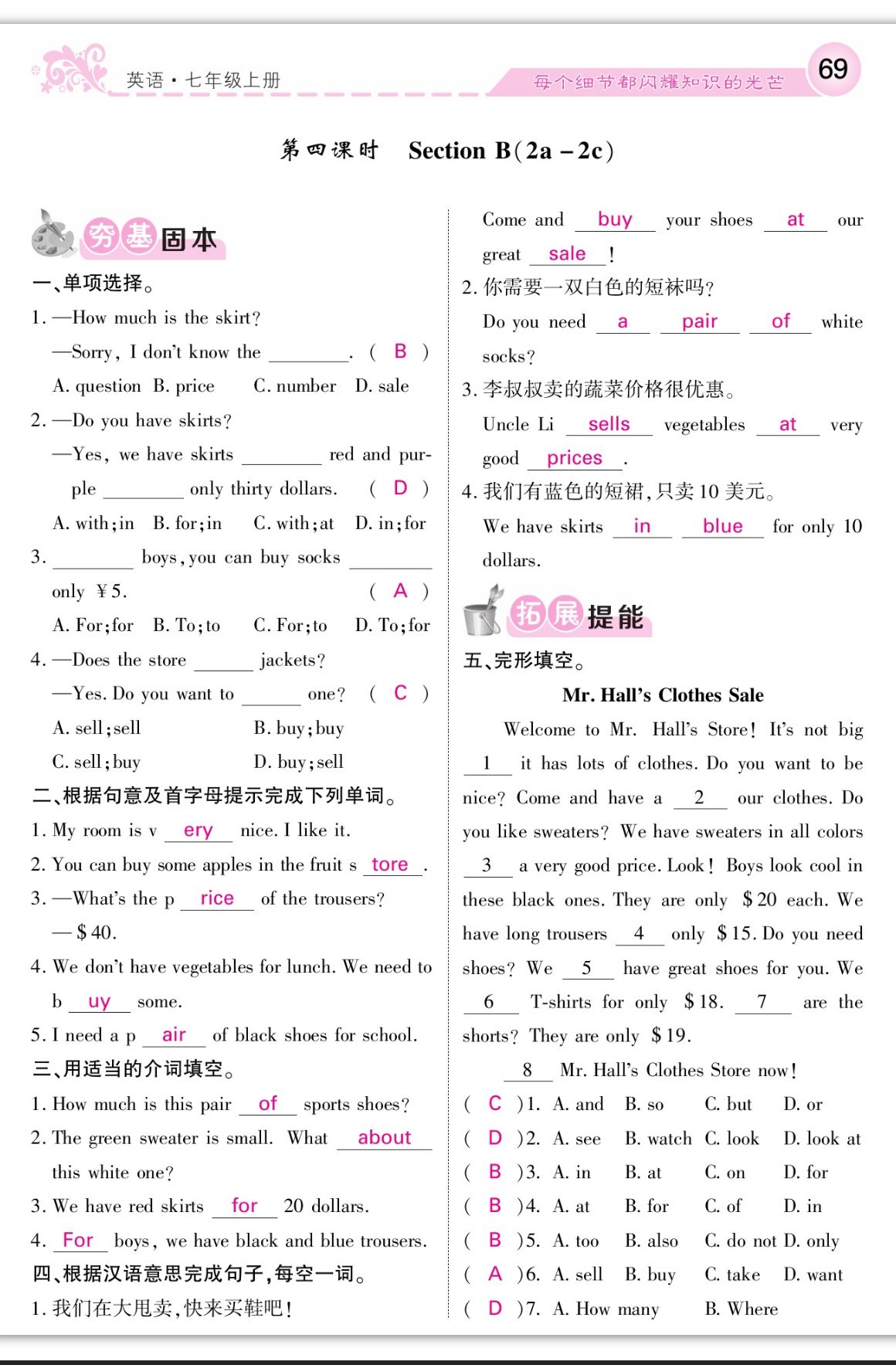 注:目前有些书本章节名称可能整理的还不是很完善,但都是按照顺序排列的,请同学们按照顺序仔细查找。练习册 2023年课堂点睛七年级英语上册人教版 答案主要是用来给同学们做完题方便对答案用的,请勿直接抄袭。