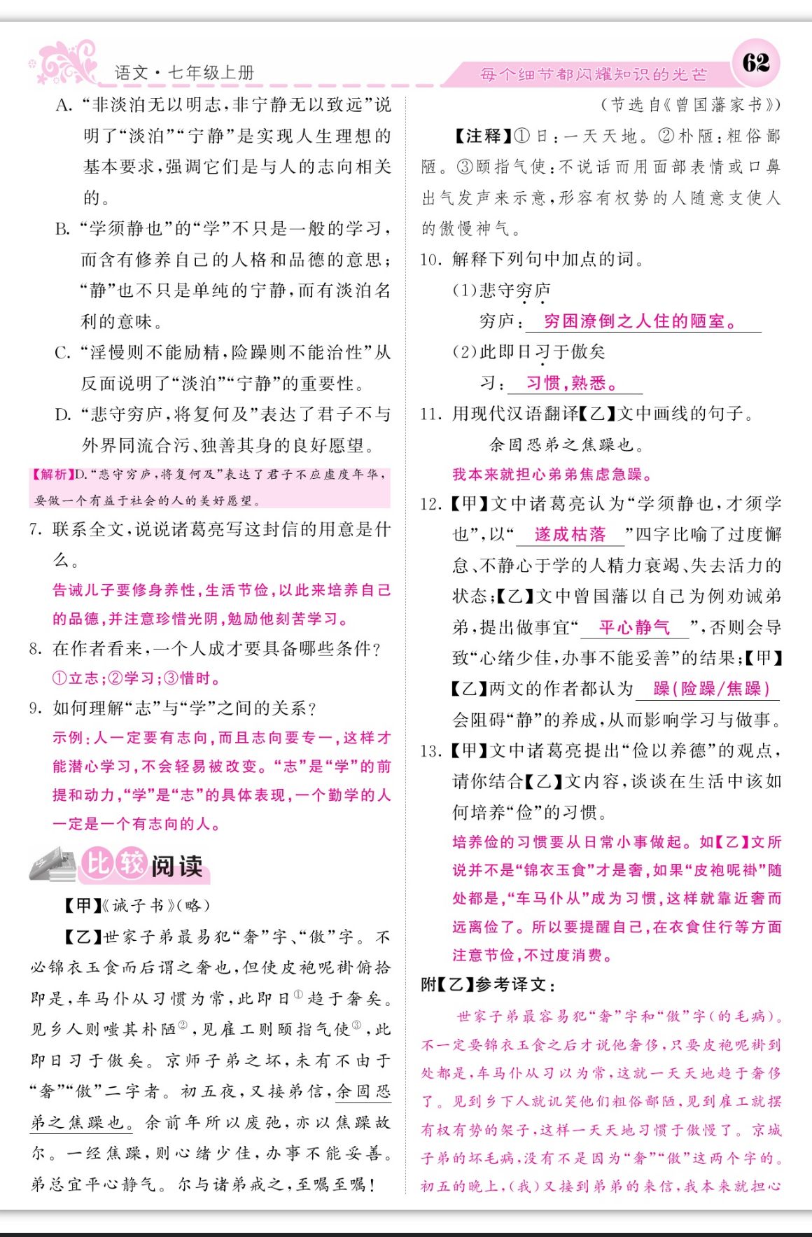 注:目前有些书本章节名称可能整理的还不是很完善,但都是按照顺序排列的,请同学们按照顺序仔细查找。练习册 2023年课堂点睛七年级语文上册人教版 答案主要是用来给同学们做完题方便对答案用的,请勿直接抄袭。