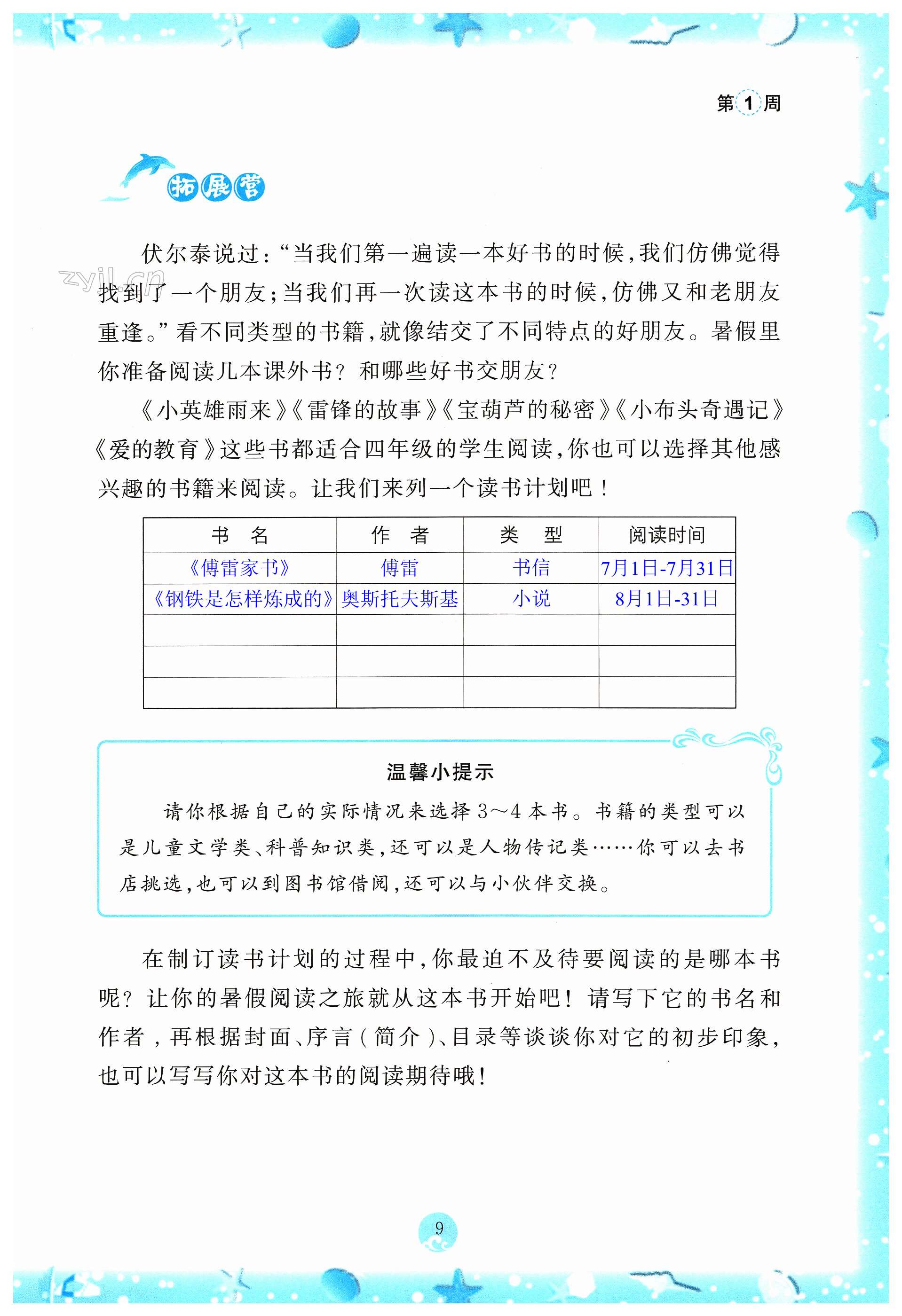 2023年小学综合暑假作业本四年级人教版浙江教育出版社
