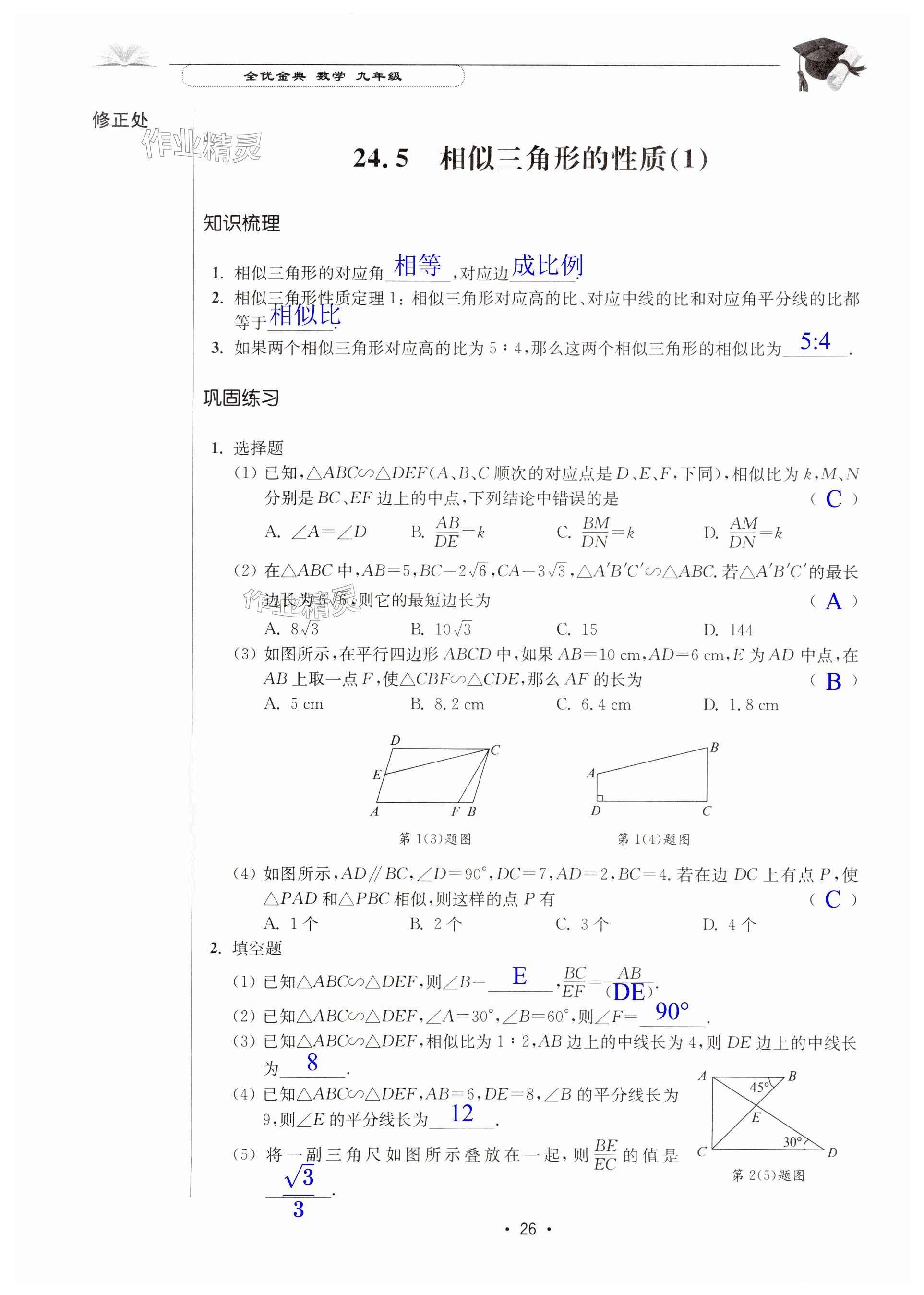 注:目前有些书本章节名称可能整理的还不是很完善,但都是按照顺序排列的,请同学们按照顺序仔细查找。练习册 2023年全优金典九年级数学全一册沪教版54制 答案主要是用来给同学们做完题方便对答案用的,请勿直接抄袭。