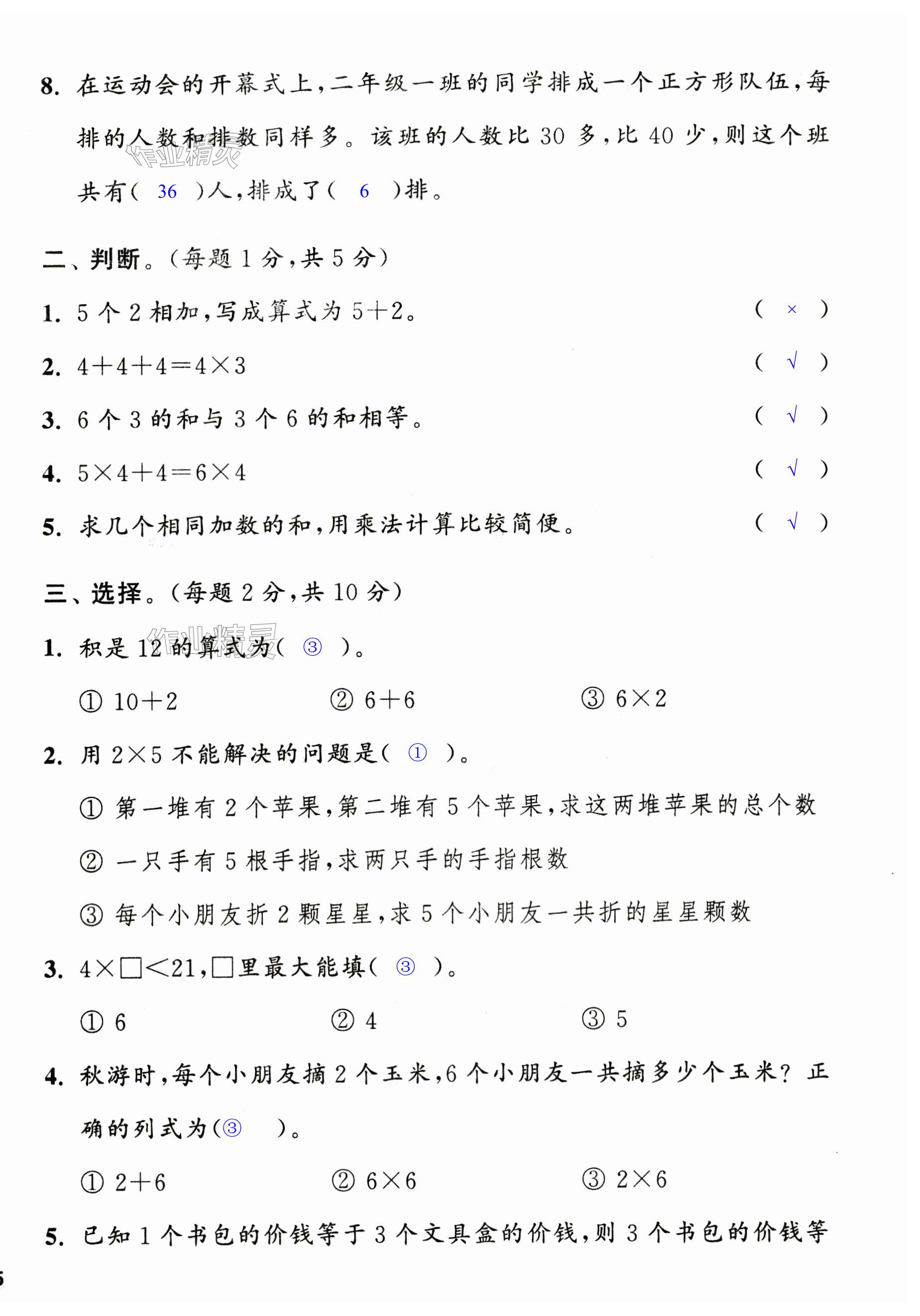 注:目前有些书本章节名称可能整理的还不是很完善,但都是按照顺序排列的,请同学们按照顺序仔细查找。练习册 2023年通城学典课时新体验二年级数学上册苏教版 答案主要是用来给同学们做完题方便对答案用的,请勿直接抄袭。