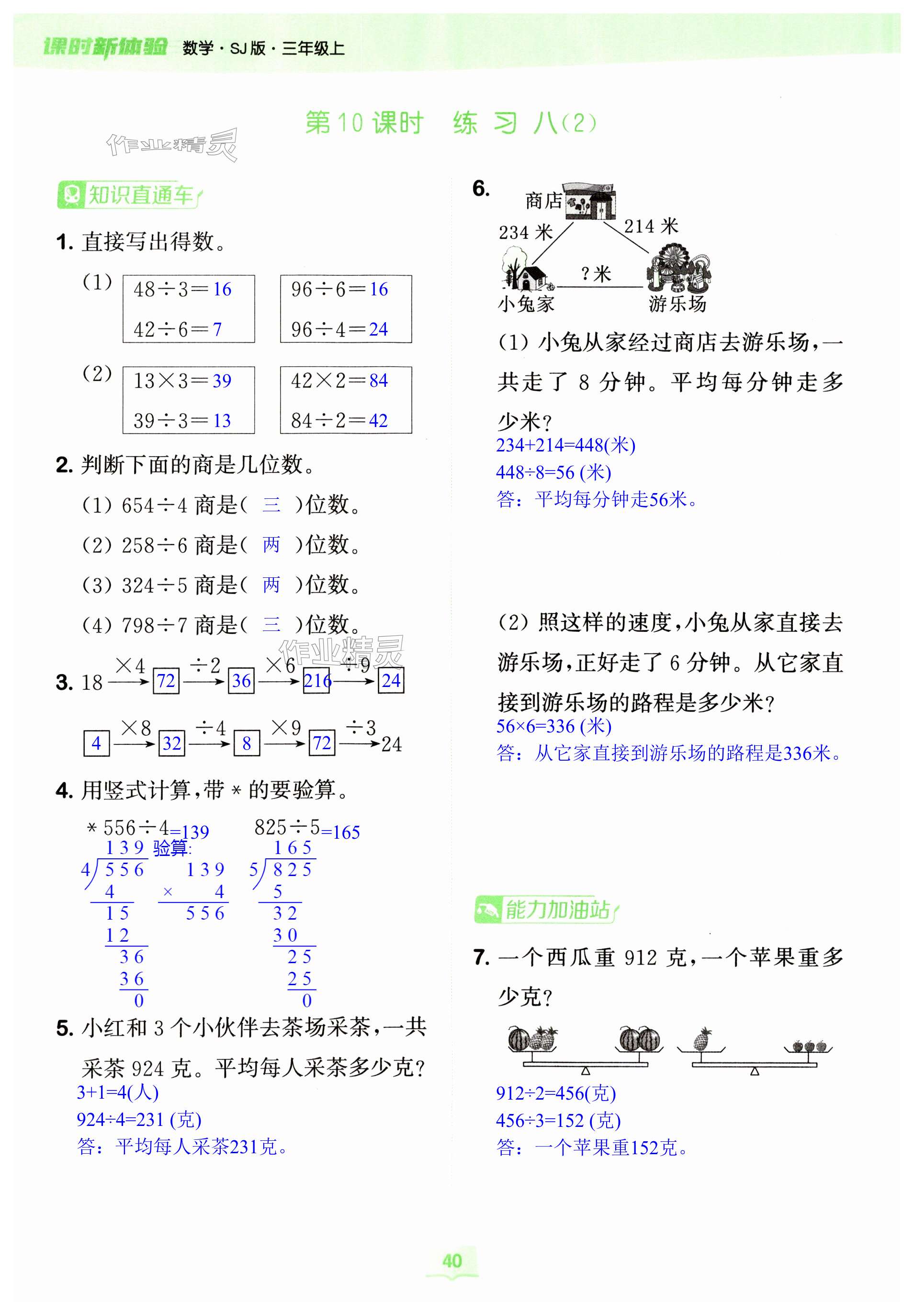 注:目前有些书本章节名称可能整理的还不是很完善,但都是按照顺序排列的,请同学们按照顺序仔细查找。练习册 2023年通城学典课时新体验三年级数学上册苏教版 答案主要是用来给同学们做完题方便对答案用的,请勿直接抄袭。