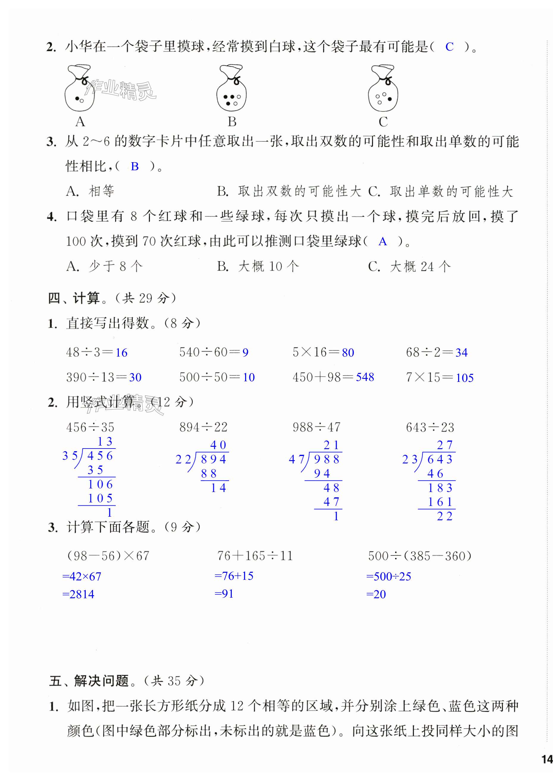 注:目前有些书本章节名称可能整理的还不是很完善,但都是按照顺序排列的,请同学们按照顺序仔细查找。练习册 2023年通城学典课时新体验四年级数学上册苏教版 答案主要是用来给同学们做完题方便对答案用的,请勿直接抄袭。