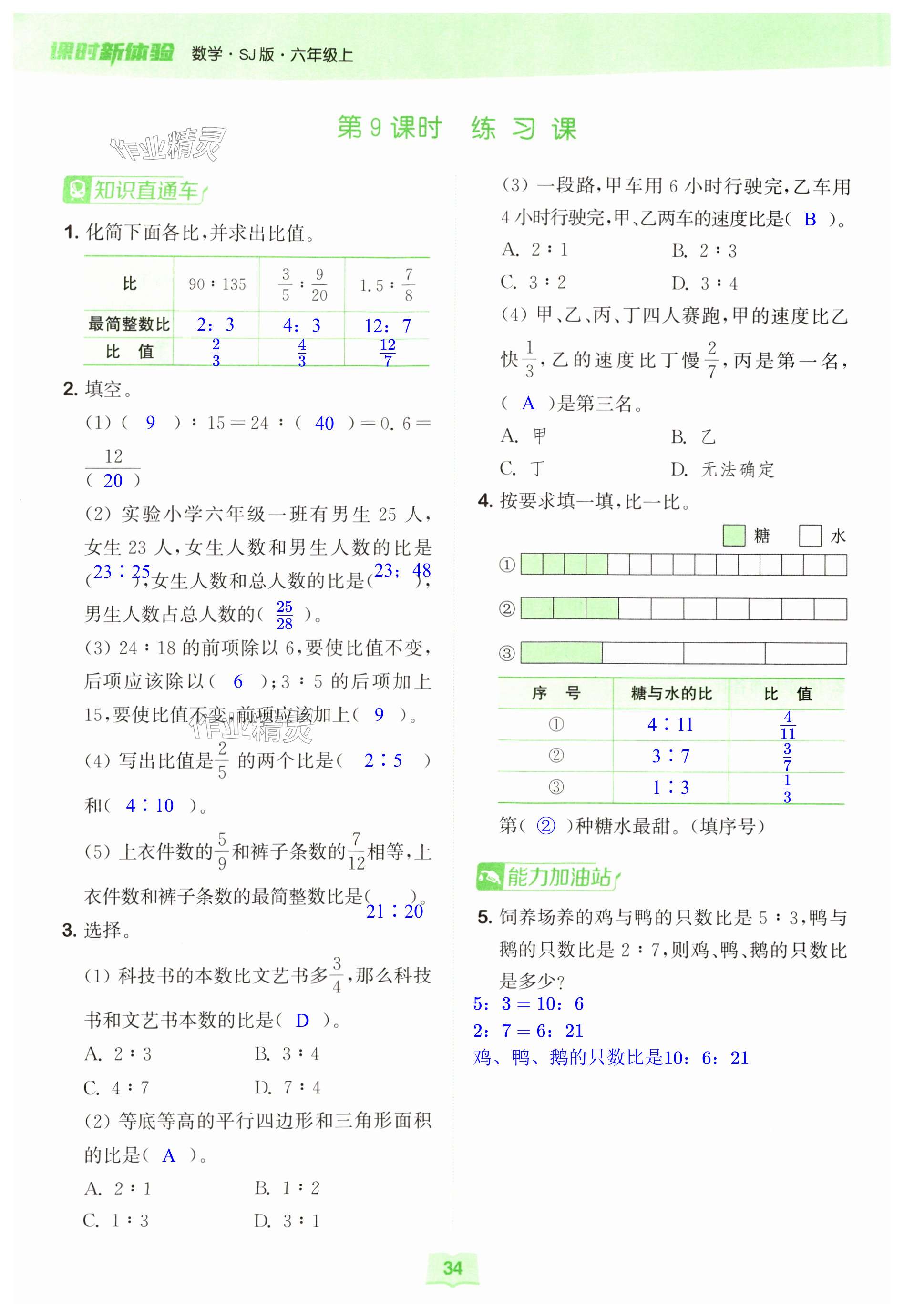 注:目前有些书本章节名称可能整理的还不是很完善,但都是按照顺序排列的,请同学们按照顺序仔细查找。练习册 2023年通城学典课时新体验六年级数学上册苏教版 答案主要是用来给同学们做完题方便对答案用的,请勿直接抄袭。