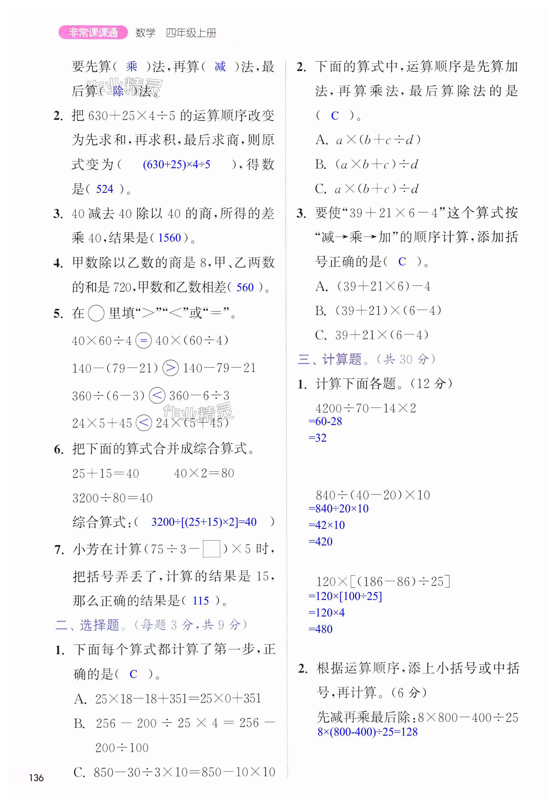 注:目前有些书本章节名称可能整理的还不是很完善,但都是按照顺序排列的,请同学们按照顺序仔细查找。练习册 2023年通城学典非常课课通四年级数学上册苏教版 答案主要是用来给同学们做完题方便对答案用的,请勿直接抄袭。