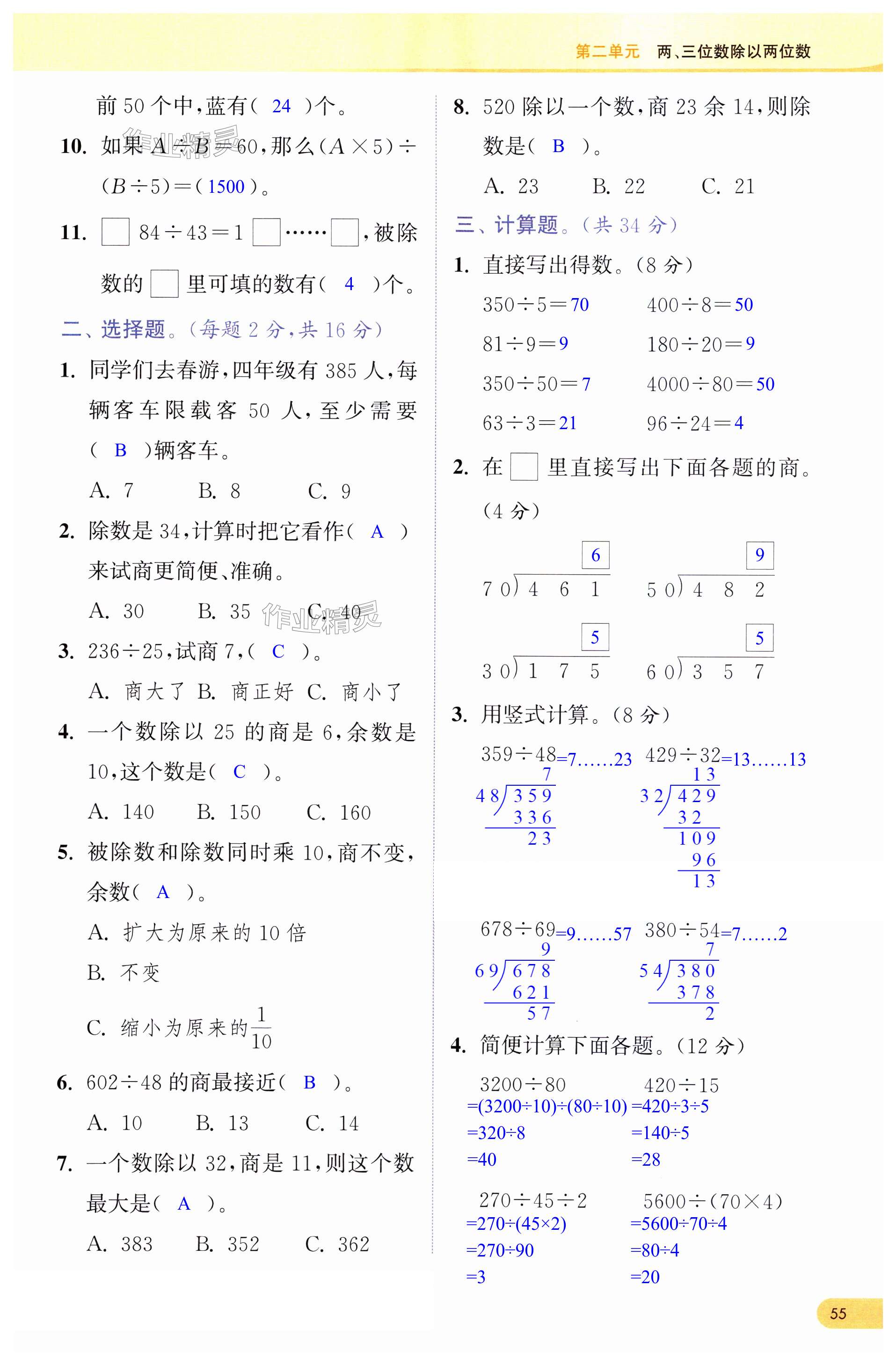 注:目前有些书本章节名称可能整理的还不是很完善,但都是按照顺序排列的,请同学们按照顺序仔细查找。练习册 2023年通城学典非常课课通四年级数学上册苏教版 答案主要是用来给同学们做完题方便对答案用的,请勿直接抄袭。