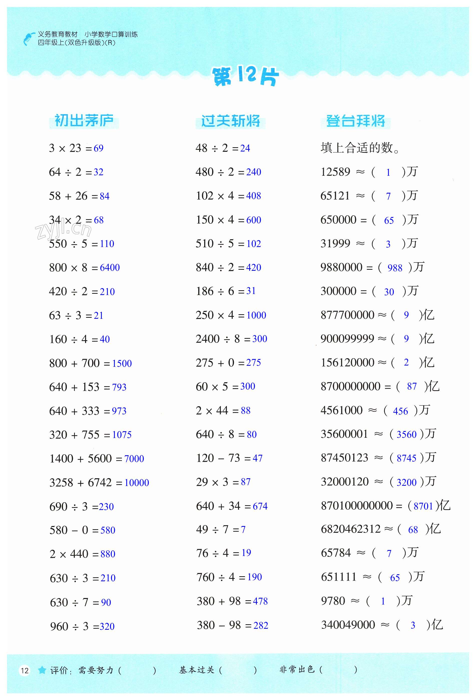 注:目前有些书本章节名称可能整理的还不是很完善,但都是按照顺序排列的,请同学们按照顺序仔细查找。练习册 2023年口算训练四年级数学上册人教版升级版 答案主要是用来给同学们做完题方便对答案用的,请勿直接抄袭。