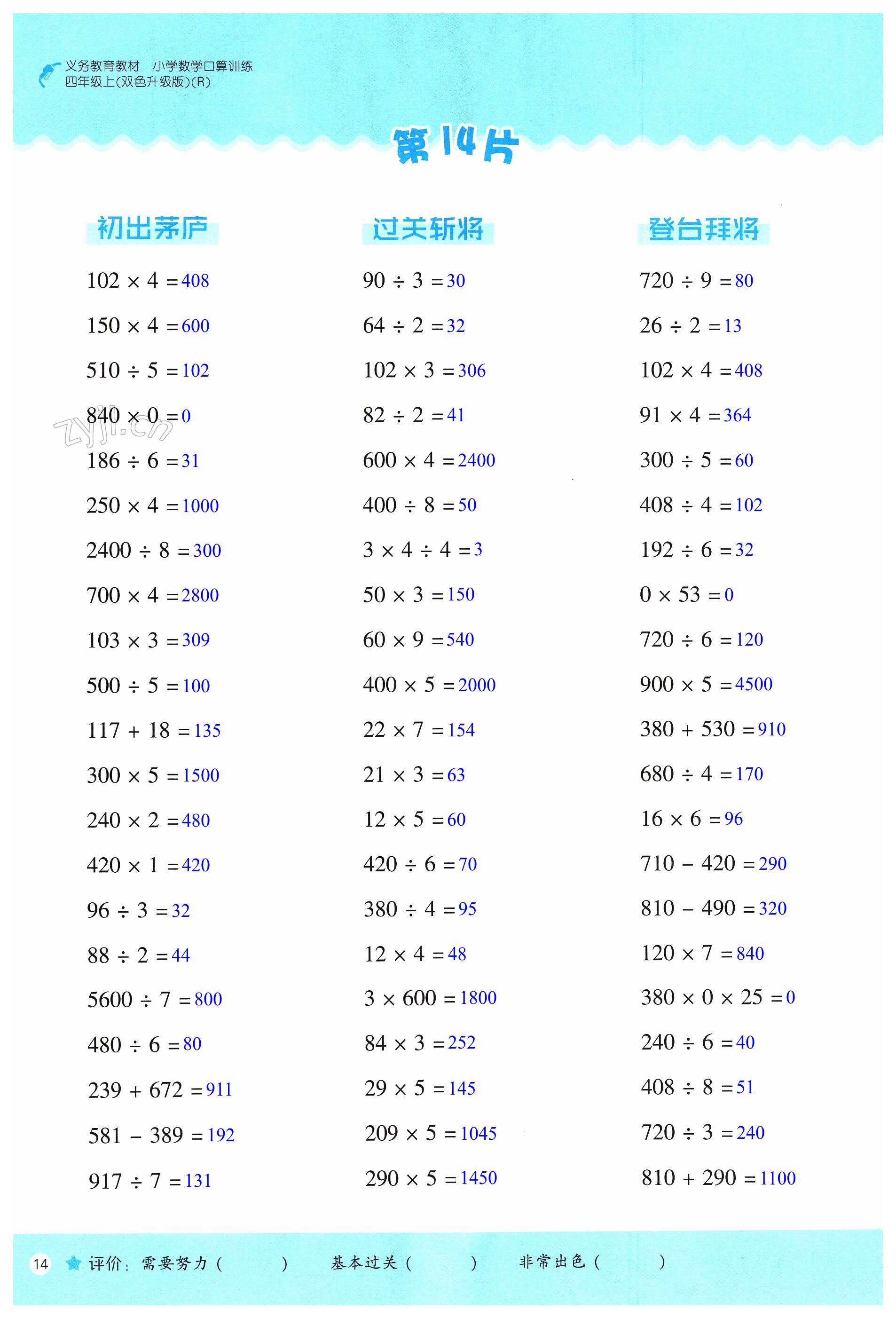 注:目前有些书本章节名称可能整理的还不是很完善,但都是按照顺序排列的,请同学们按照顺序仔细查找。练习册 2023年口算训练四年级数学上册人教版升级版 答案主要是用来给同学们做完题方便对答案用的,请勿直接抄袭。