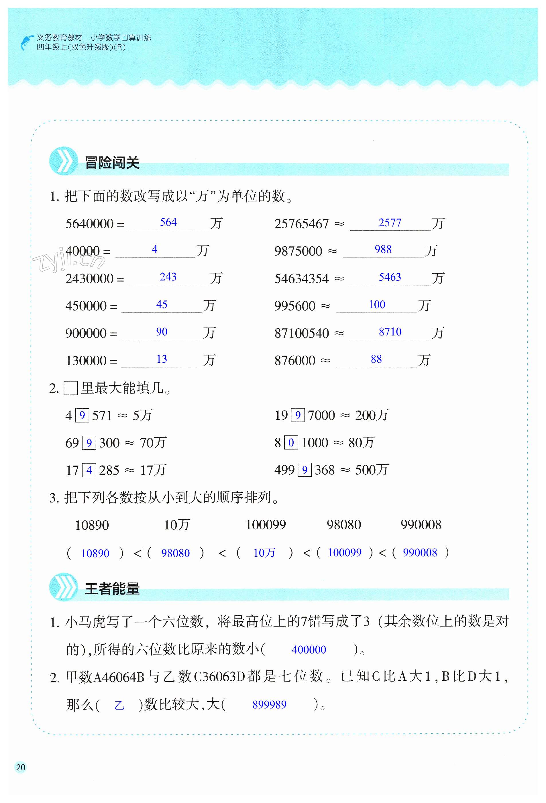 注:目前有些书本章节名称可能整理的还不是很完善,但都是按照顺序排列的,请同学们按照顺序仔细查找。练习册 2023年口算训练四年级数学上册人教版升级版 答案主要是用来给同学们做完题方便对答案用的,请勿直接抄袭。