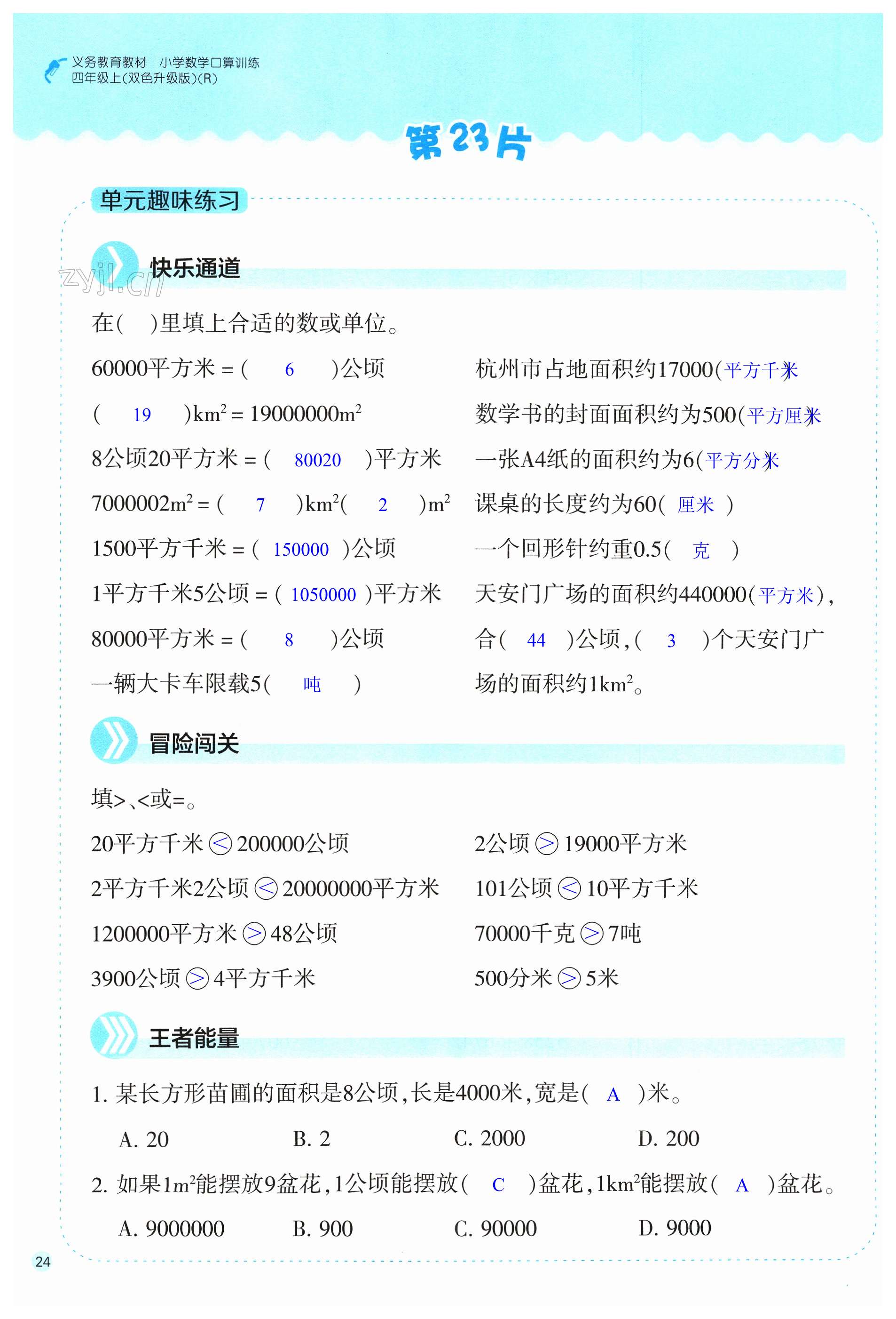 注:目前有些书本章节名称可能整理的还不是很完善,但都是按照顺序排列的,请同学们按照顺序仔细查找。练习册 2023年口算训练四年级数学上册人教版升级版 答案主要是用来给同学们做完题方便对答案用的,请勿直接抄袭。