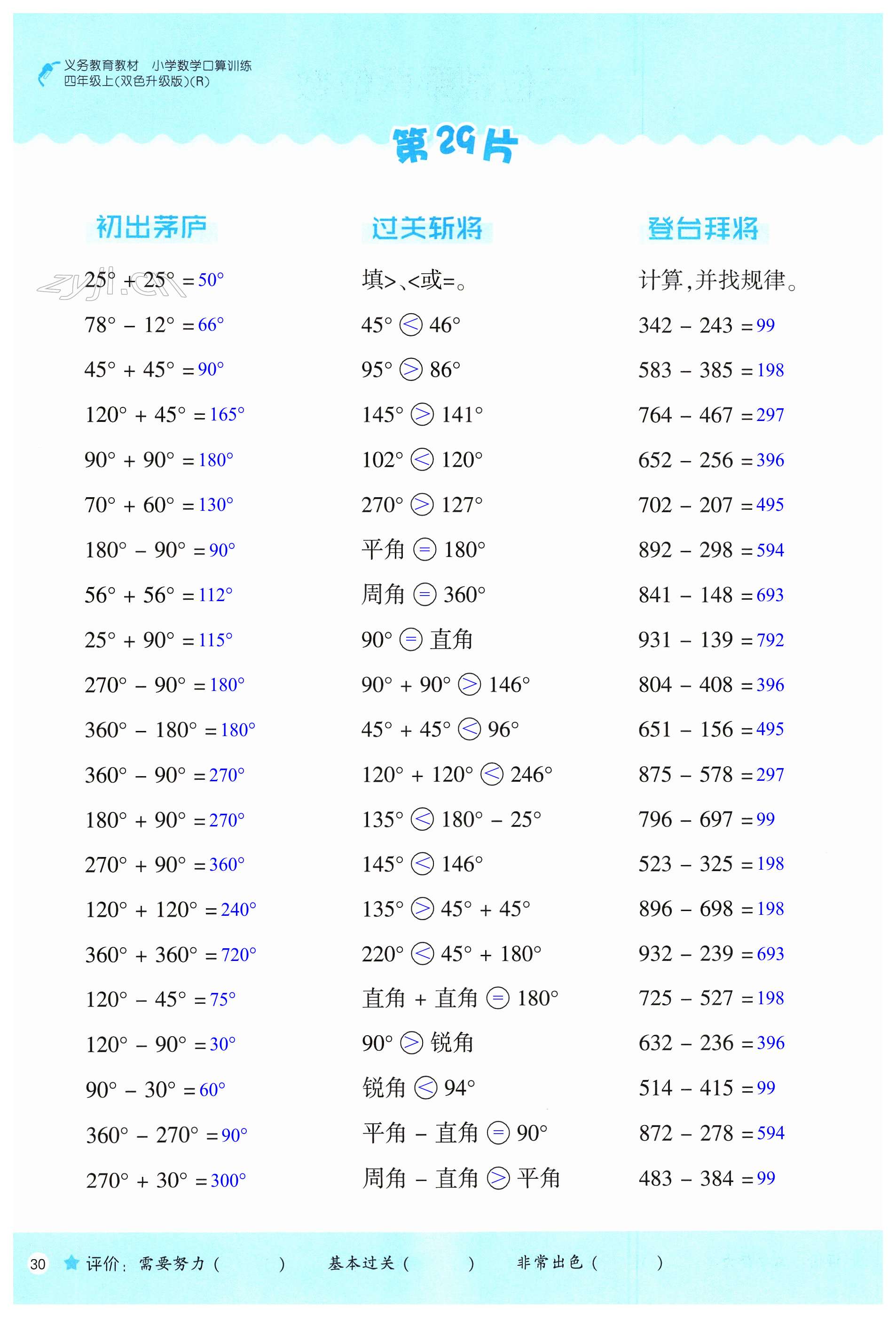 注:目前有些书本章节名称可能整理的还不是很完善,但都是按照顺序排列的,请同学们按照顺序仔细查找。练习册 2023年口算训练四年级数学上册人教版升级版 答案主要是用来给同学们做完题方便对答案用的,请勿直接抄袭。