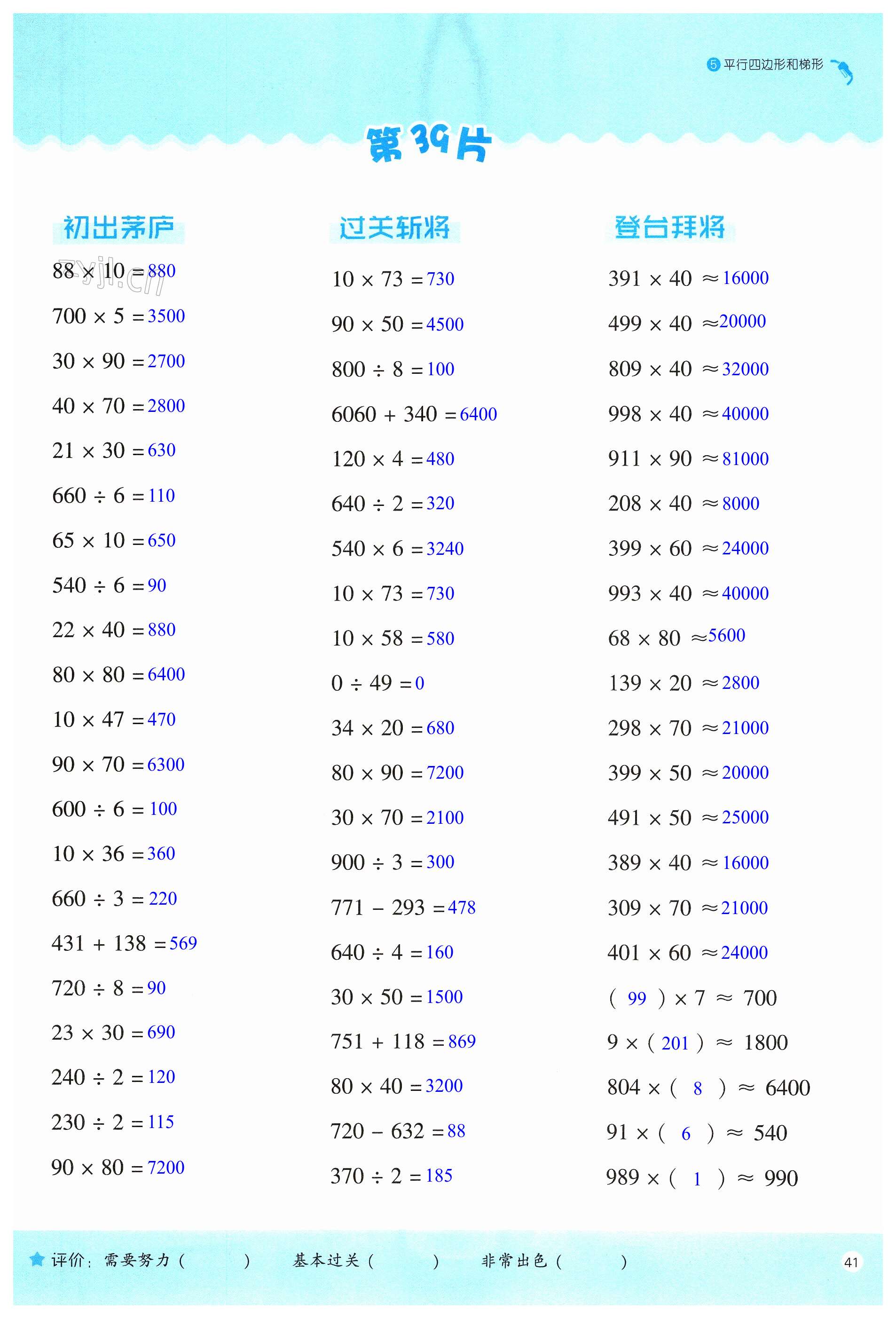 注:目前有些书本章节名称可能整理的还不是很完善,但都是按照顺序排列的,请同学们按照顺序仔细查找。练习册 2023年口算训练四年级数学上册人教版升级版 答案主要是用来给同学们做完题方便对答案用的,请勿直接抄袭。