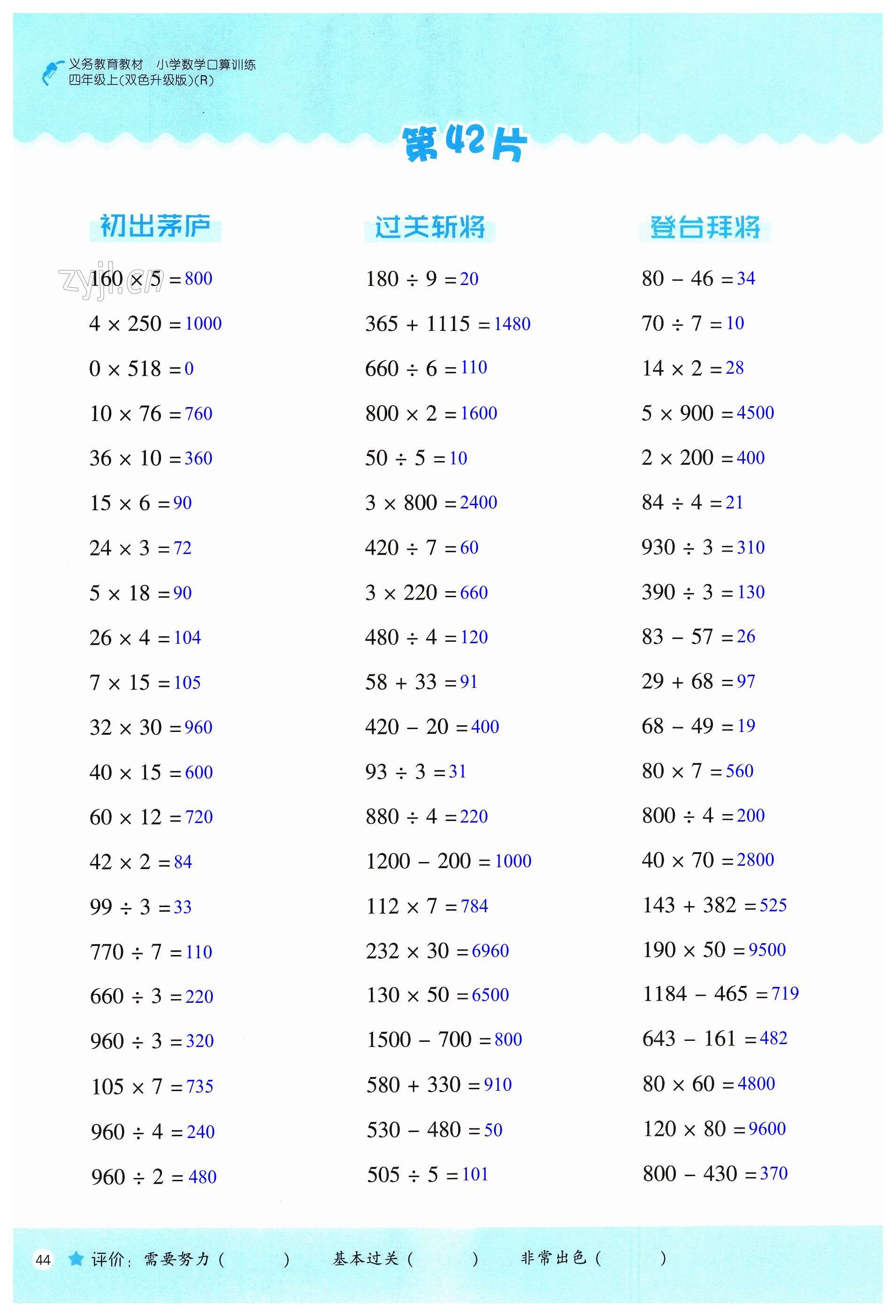 注:目前有些书本章节名称可能整理的还不是很完善,但都是按照顺序排列的,请同学们按照顺序仔细查找。练习册 2023年口算训练四年级数学上册人教版升级版 答案主要是用来给同学们做完题方便对答案用的,请勿直接抄袭。