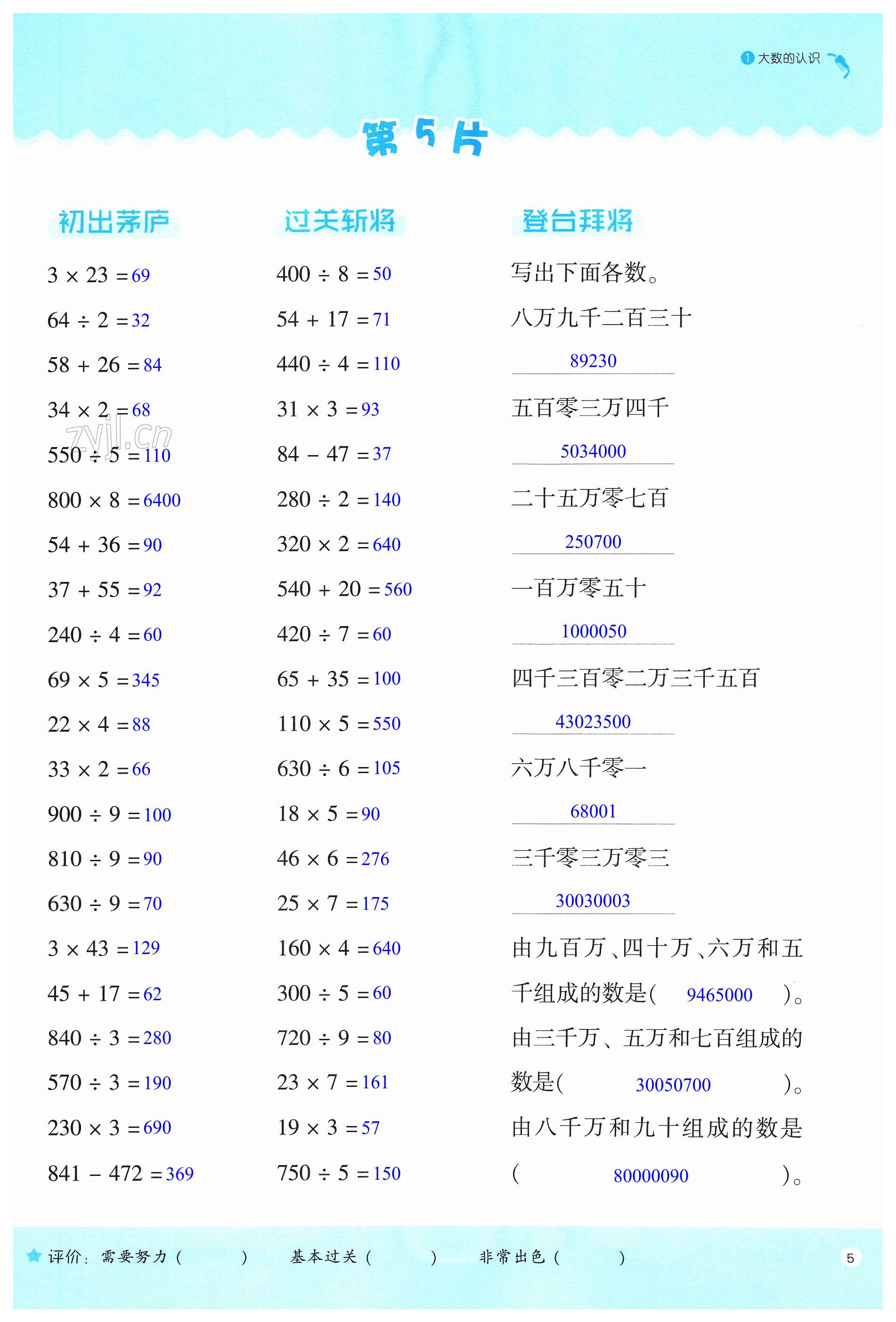 注:目前有些书本章节名称可能整理的还不是很完善,但都是按照顺序排列的,请同学们按照顺序仔细查找。练习册 2023年口算训练四年级数学上册人教版升级版 答案主要是用来给同学们做完题方便对答案用的,请勿直接抄袭。