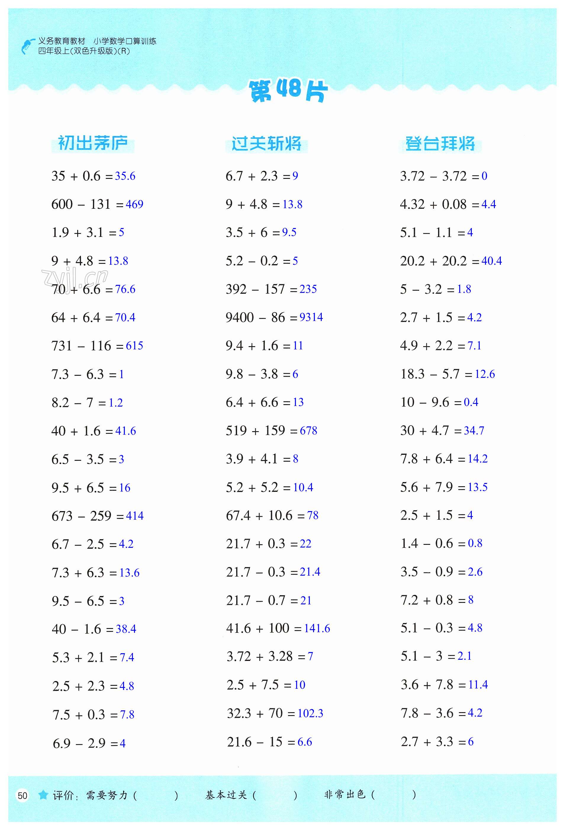 注:目前有些书本章节名称可能整理的还不是很完善,但都是按照顺序排列的,请同学们按照顺序仔细查找。练习册 2023年口算训练四年级数学上册人教版升级版 答案主要是用来给同学们做完题方便对答案用的,请勿直接抄袭。