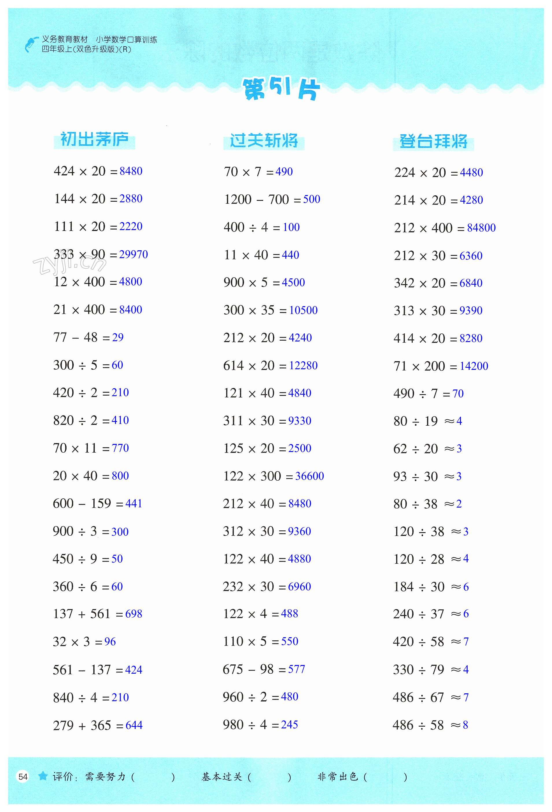 注:目前有些书本章节名称可能整理的还不是很完善,但都是按照顺序排列的,请同学们按照顺序仔细查找。练习册 2023年口算训练四年级数学上册人教版升级版 答案主要是用来给同学们做完题方便对答案用的,请勿直接抄袭。
