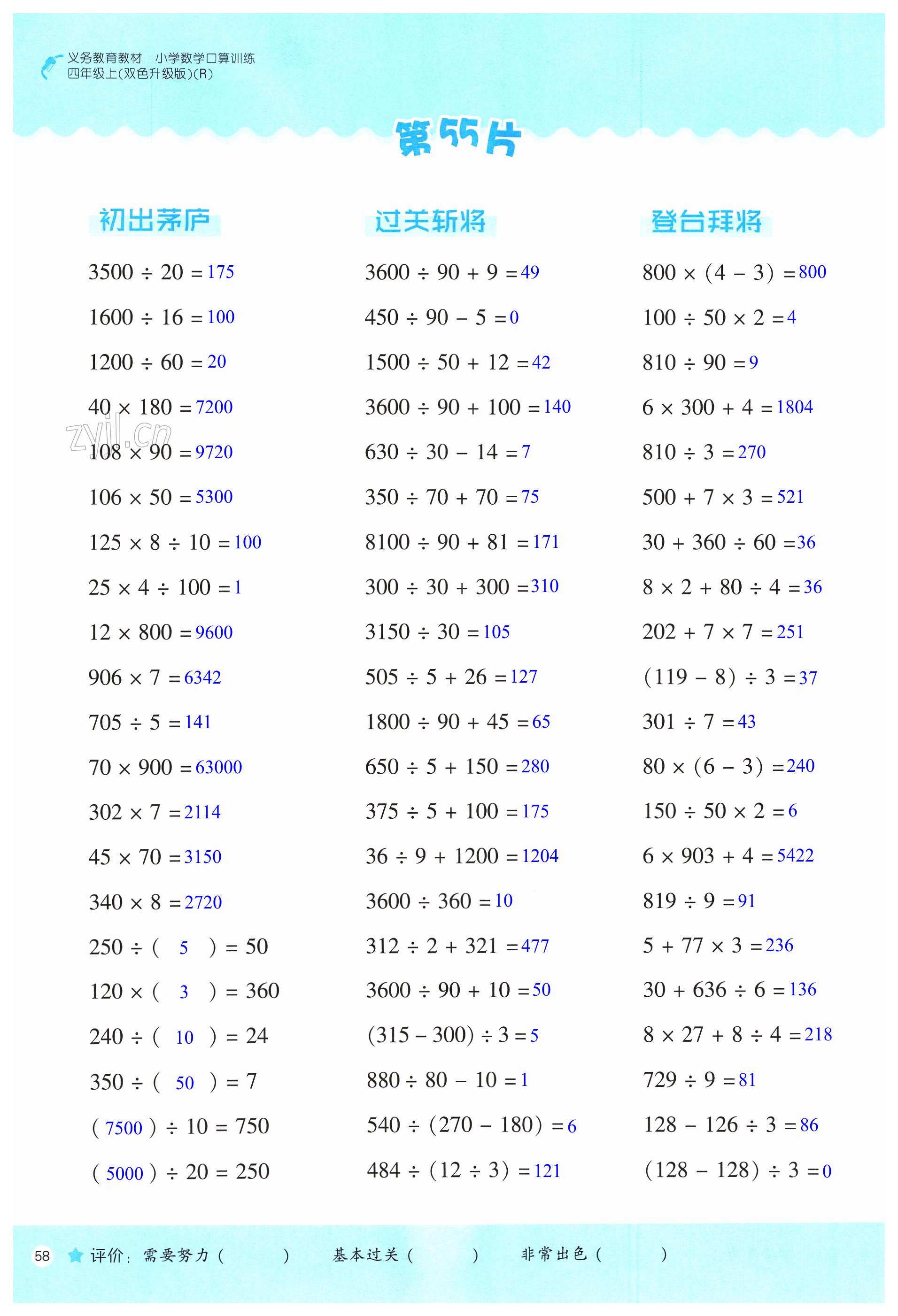 注:目前有些书本章节名称可能整理的还不是很完善,但都是按照顺序排列的,请同学们按照顺序仔细查找。练习册 2023年口算训练四年级数学上册人教版升级版 答案主要是用来给同学们做完题方便对答案用的,请勿直接抄袭。
