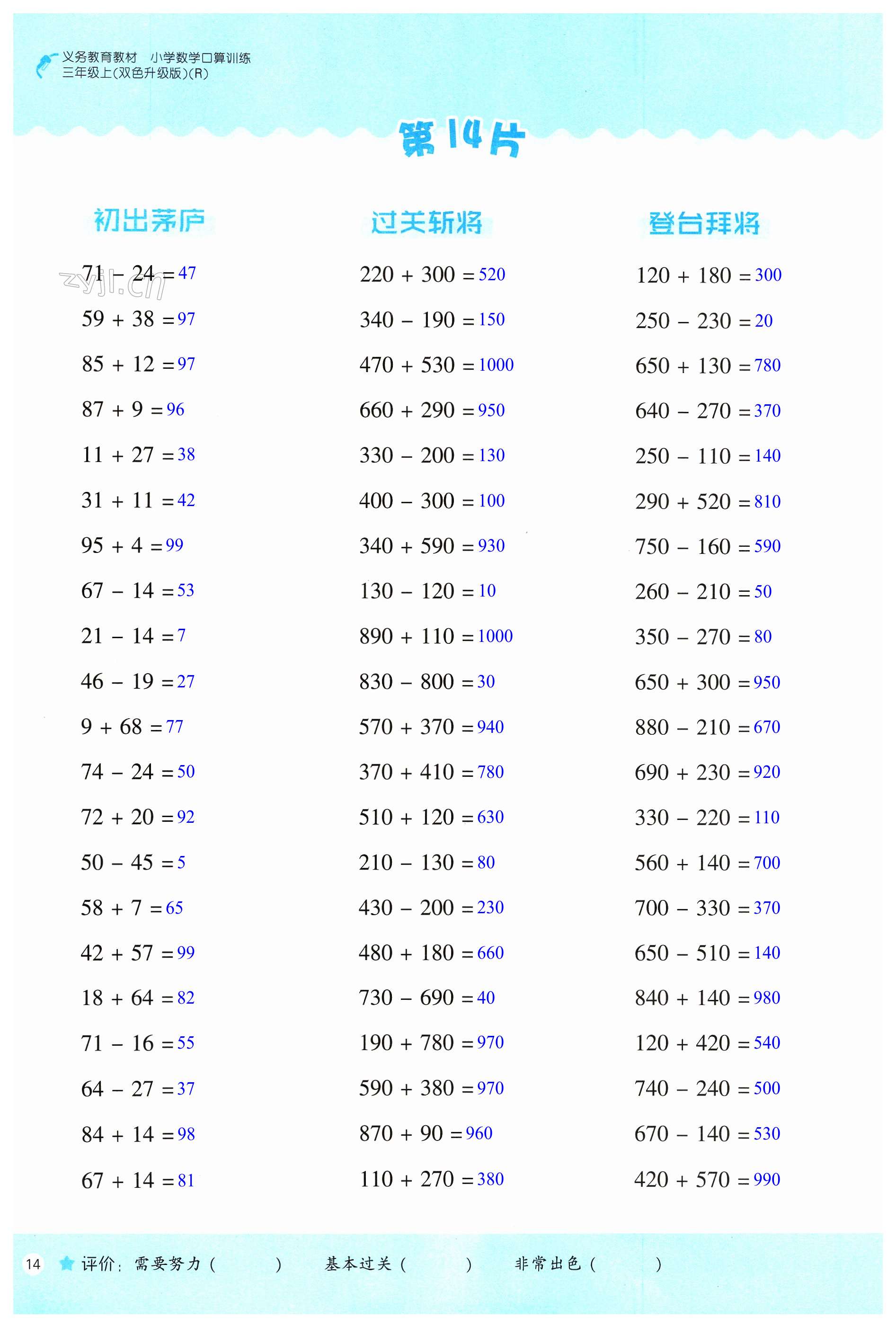 注:目前有些书本章节名称可能整理的还不是很完善,但都是按照顺序排列的,请同学们按照顺序仔细查找。练习册 2023年口算训练三年级数学上册人教版升级版 答案主要是用来给同学们做完题方便对答案用的,请勿直接抄袭。