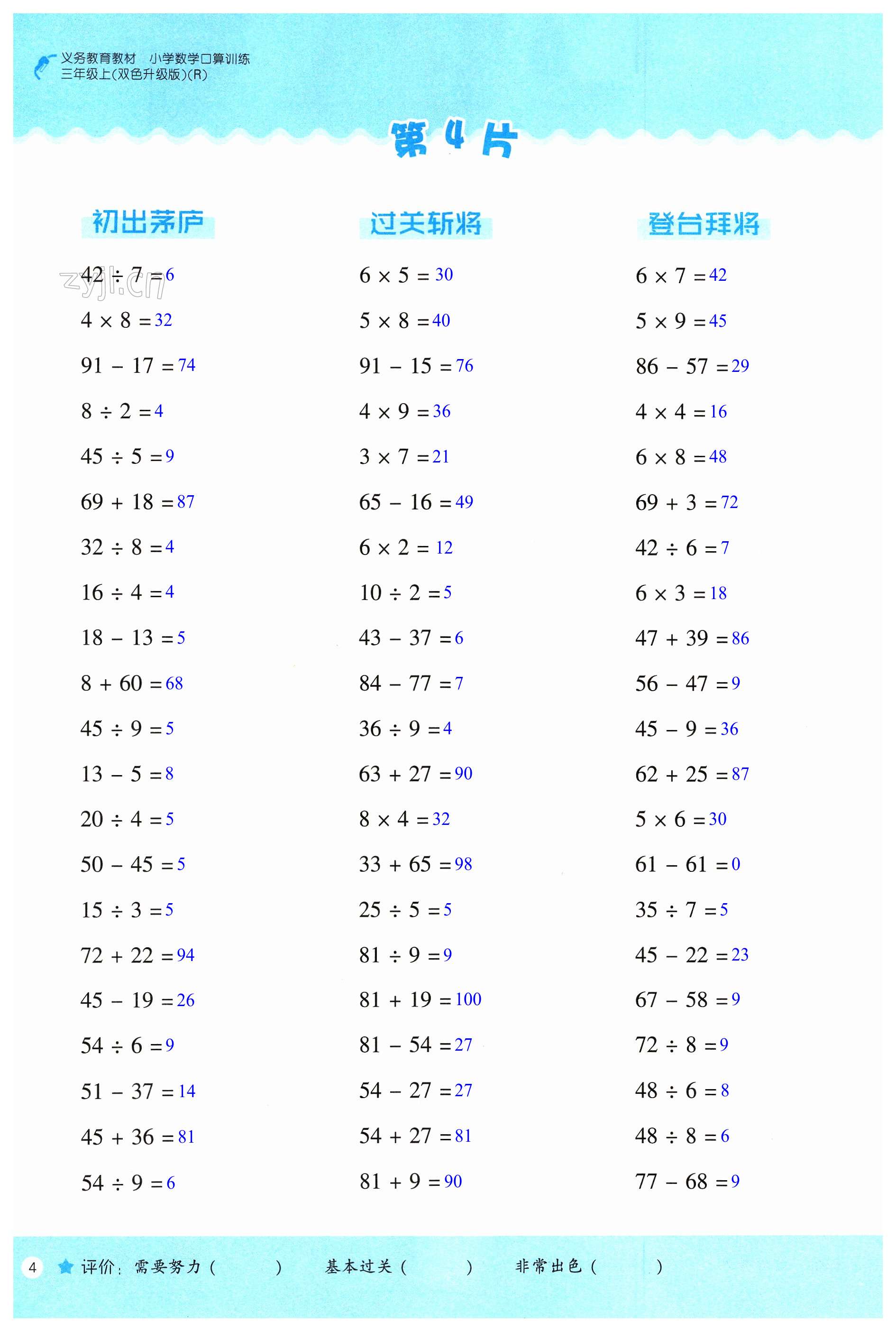 注:目前有些书本章节名称可能整理的还不是很完善,但都是按照顺序排列的,请同学们按照顺序仔细查找。练习册 2023年口算训练三年级数学上册人教版升级版 答案主要是用来给同学们做完题方便对答案用的,请勿直接抄袭。