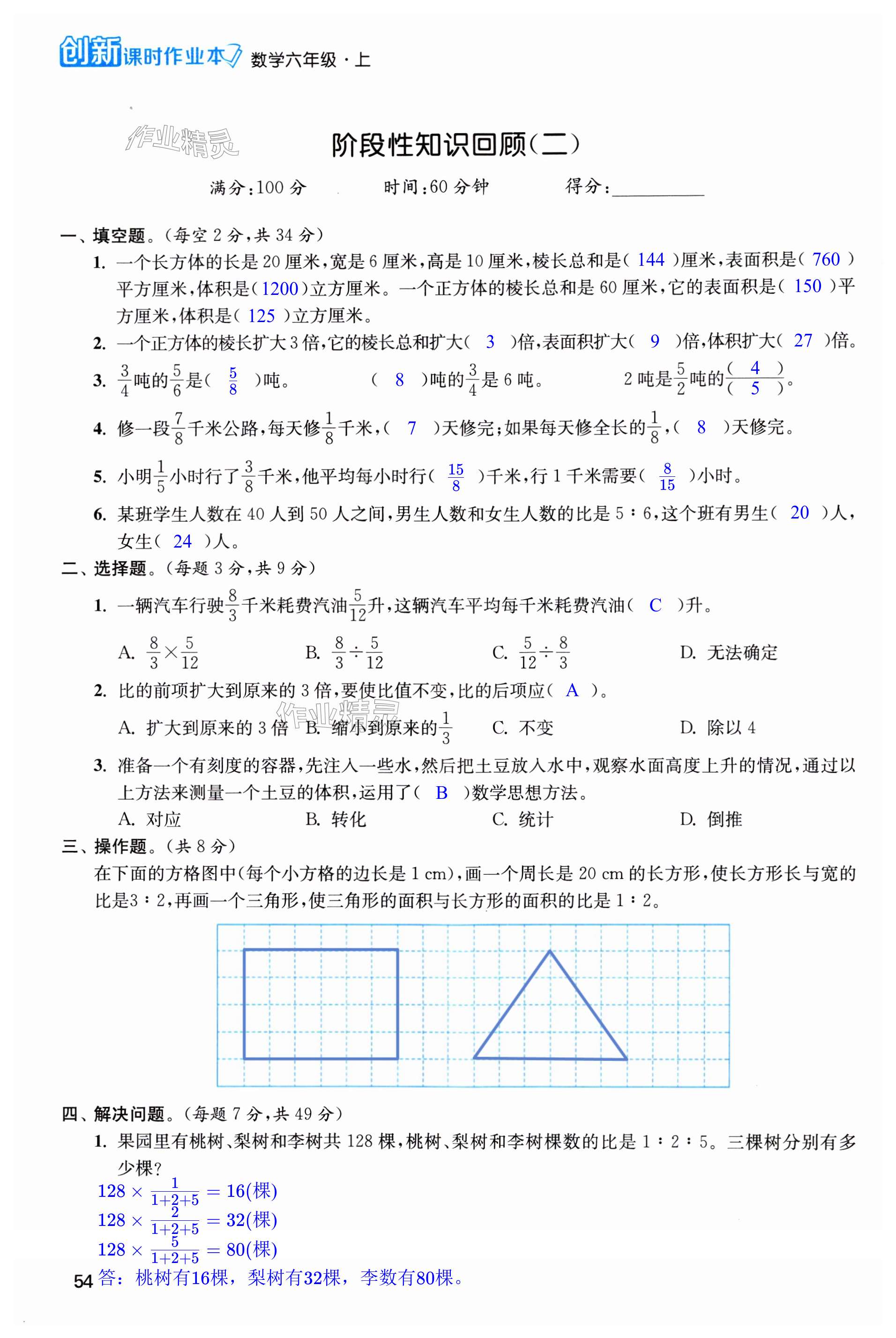 注:目前有些书本章节名称可能整理的还不是很完善,但都是按照顺序排列的,请同学们按照顺序仔细查找。练习册 2023年创新课时作业本六年级数学上册苏教版 答案主要是用来给同学们做完题方便对答案用的,请勿直接抄袭。
