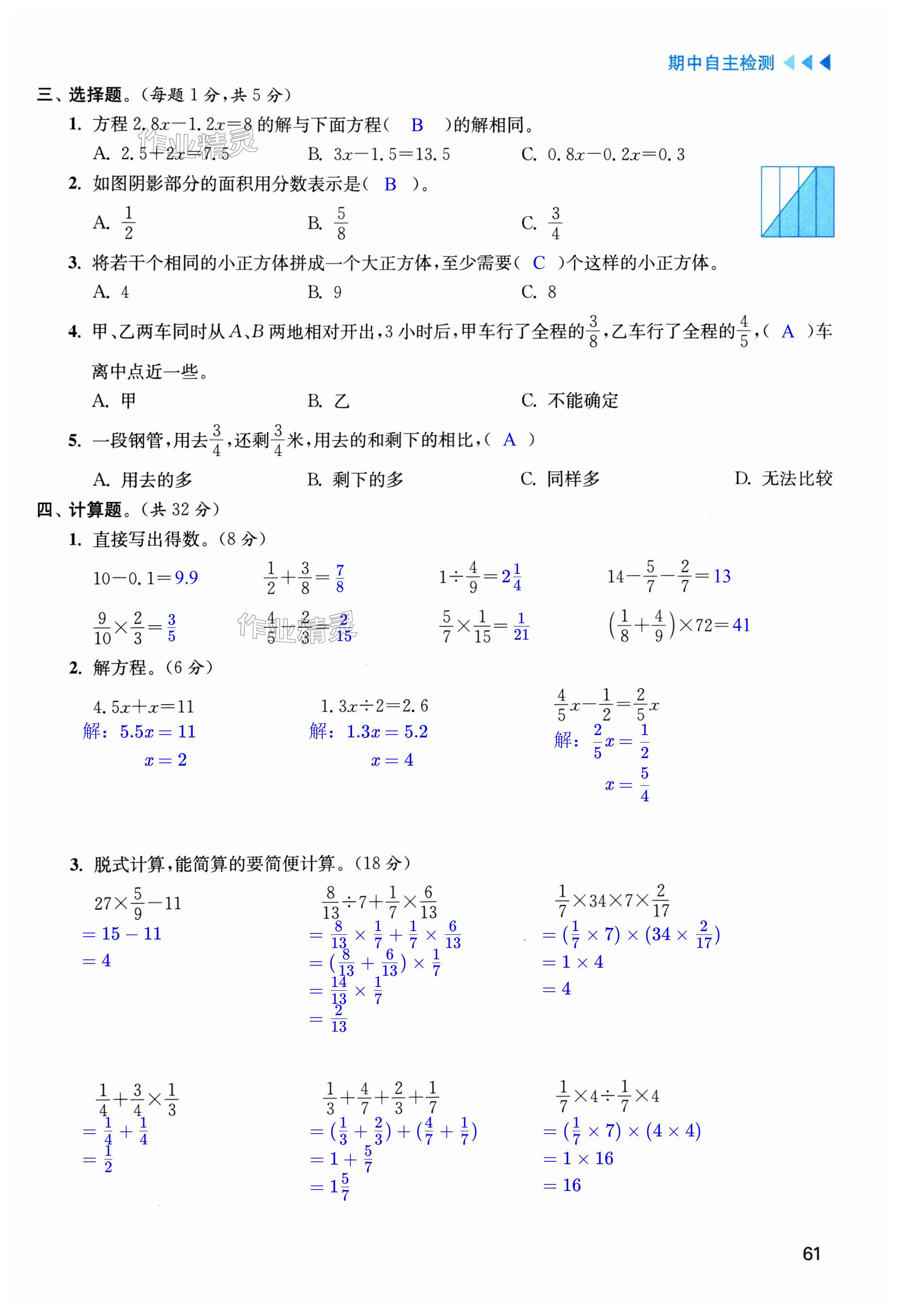 注:目前有些书本章节名称可能整理的还不是很完善,但都是按照顺序排列的,请同学们按照顺序仔细查找。练习册 2023年创新课时作业本六年级数学上册苏教版 答案主要是用来给同学们做完题方便对答案用的,请勿直接抄袭。