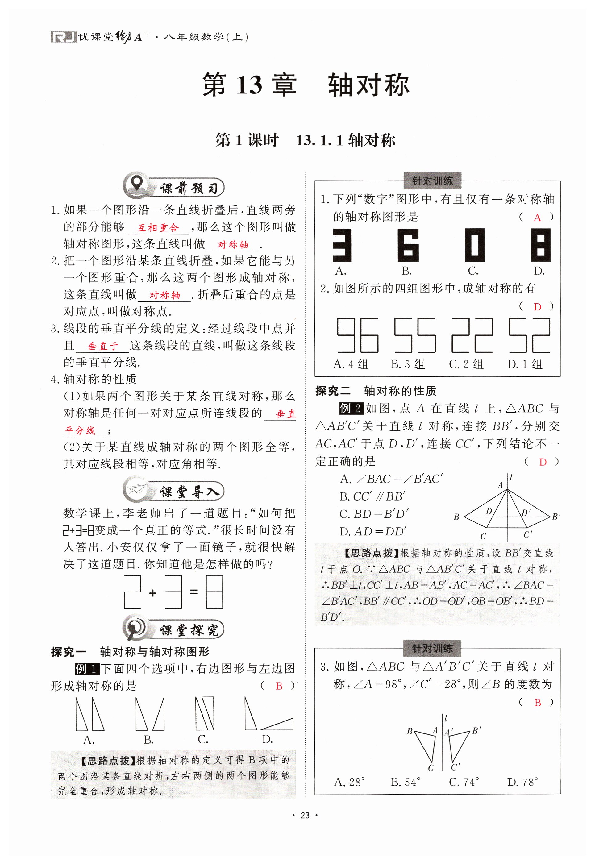 注:目前有些书本章节名称可能整理的还不是很完善,但都是按照顺序排列的,请同学们按照顺序仔细查找。练习册 2023年优课堂给力A加八年级数学上册人教版 答案主要是用来给同学们做完题方便对答案用的,请勿直接抄袭。