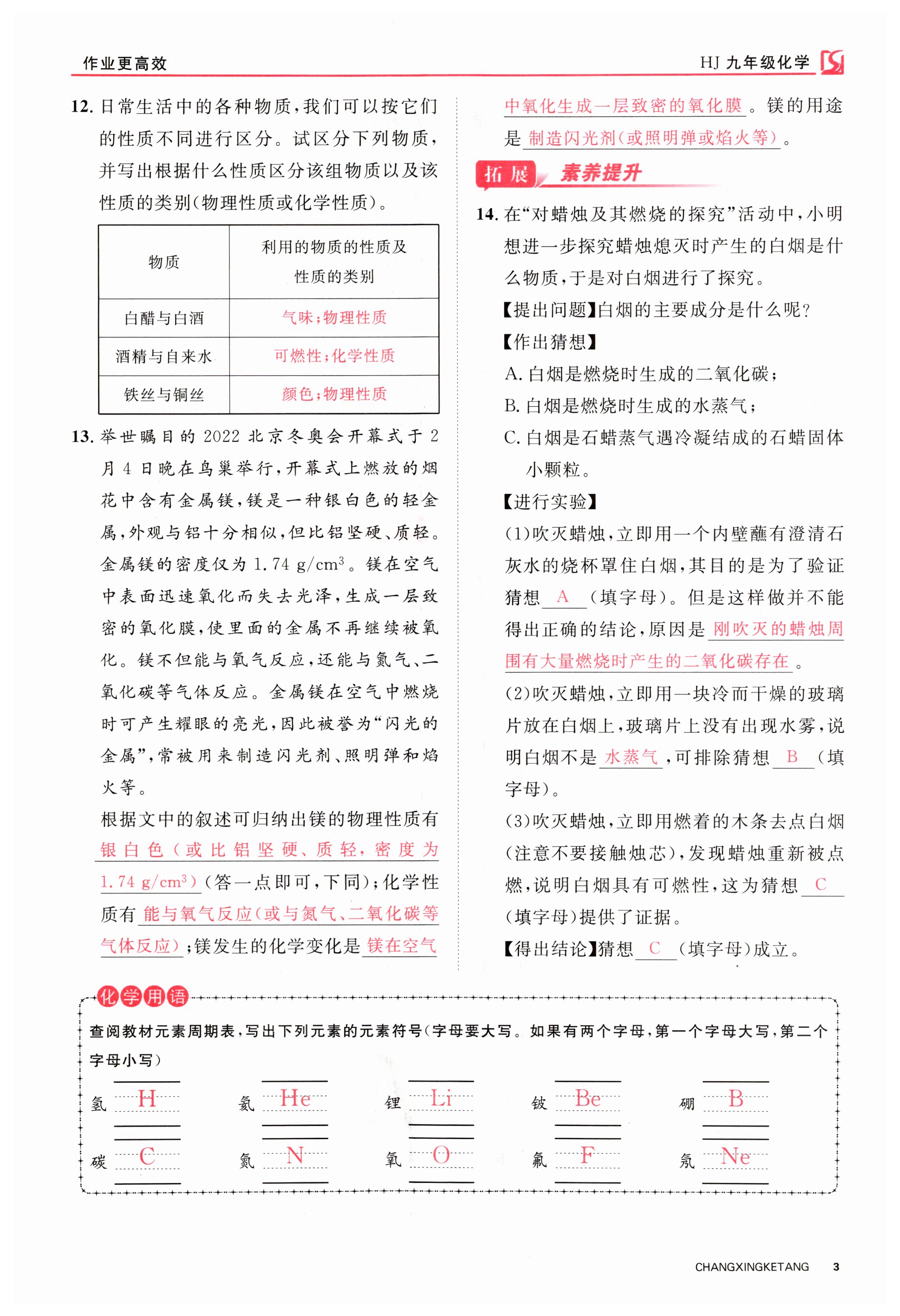 注:目前有些书本章节名称可能整理的还不是很完善,但都是按照顺序排列的,请同学们按照顺序仔细查找。练习册 2023年畅行课堂九年级化学全一册沪教版 答案主要是用来给同学们做完题方便对答案用的,请勿直接抄袭。