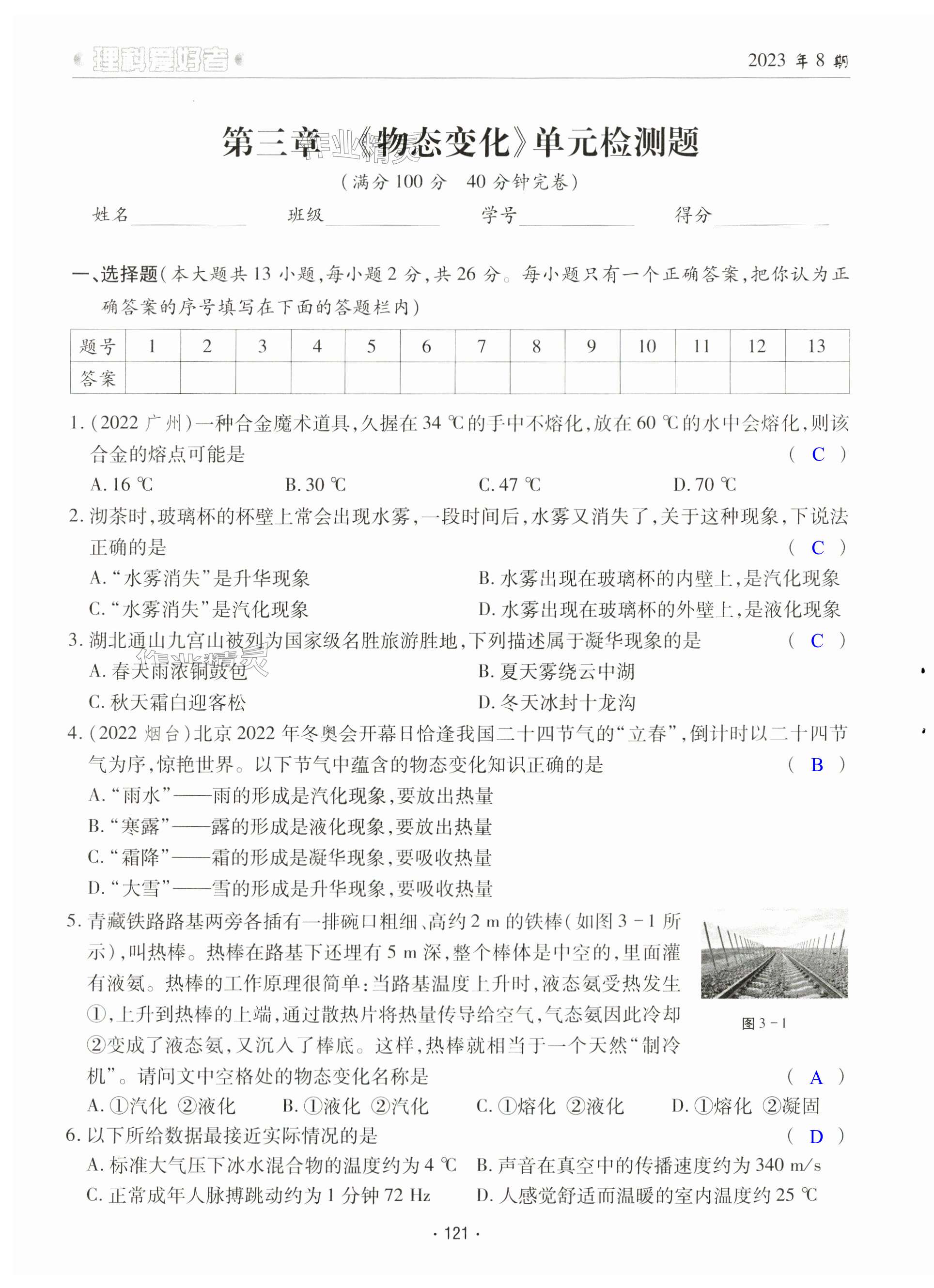 注:目前有些书本章节名称可能整理的还不是很完善,但都是按照顺序排列的,请同学们按照顺序仔细查找。练习册 2023年理科爱好者八年级物理上册人教版 答案主要是用来给同学们做完题方便对答案用的,请勿直接抄袭。