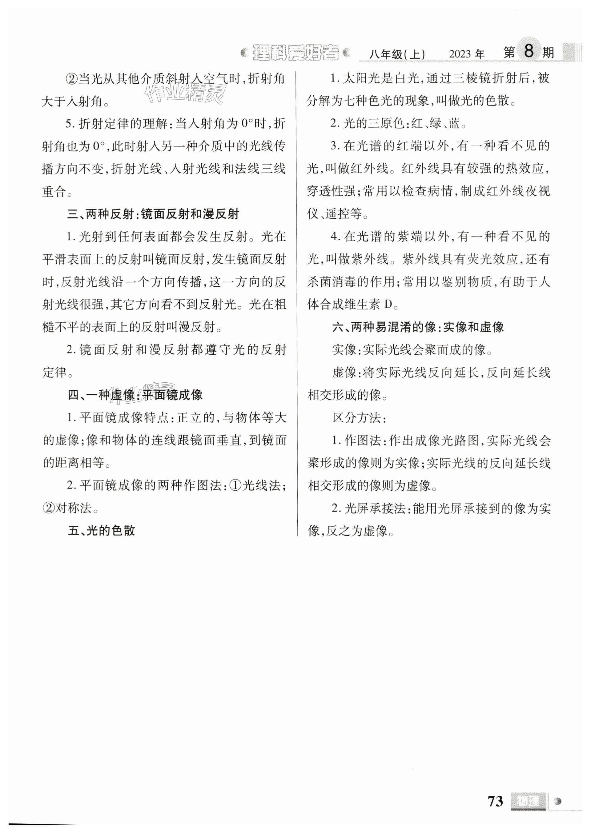 注:目前有些书本章节名称可能整理的还不是很完善,但都是按照顺序排列的,请同学们按照顺序仔细查找。练习册 2023年理科爱好者八年级物理上册人教版 答案主要是用来给同学们做完题方便对答案用的,请勿直接抄袭。