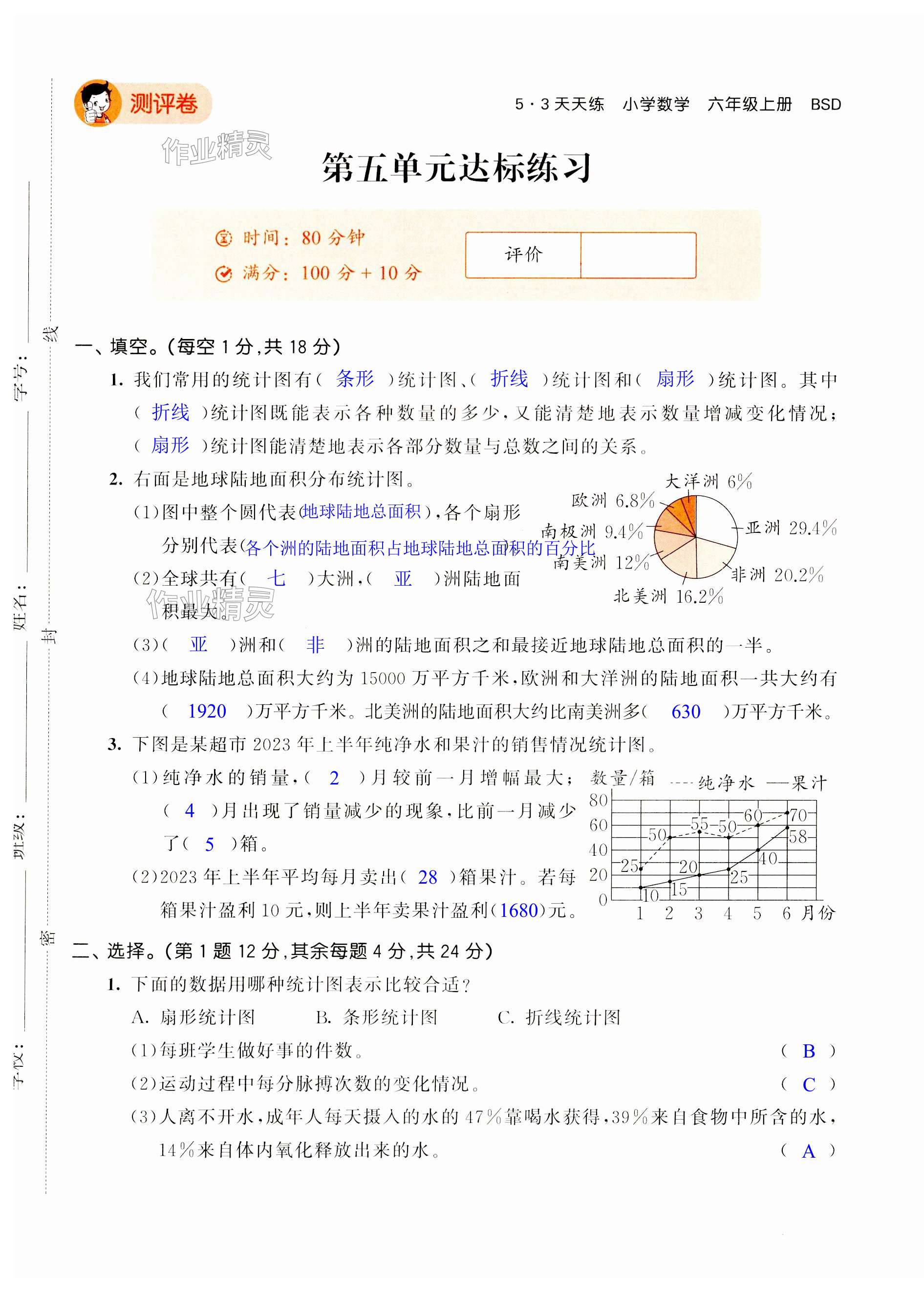 注:目前有些书本章节名称可能整理的还不是很完善,但都是按照顺序排列的,请同学们按照顺序仔细查找。练习册 2023年53天天练六年级数学上册北师大版 答案主要是用来给同学们做完题方便对答案用的,请勿直接抄袭。