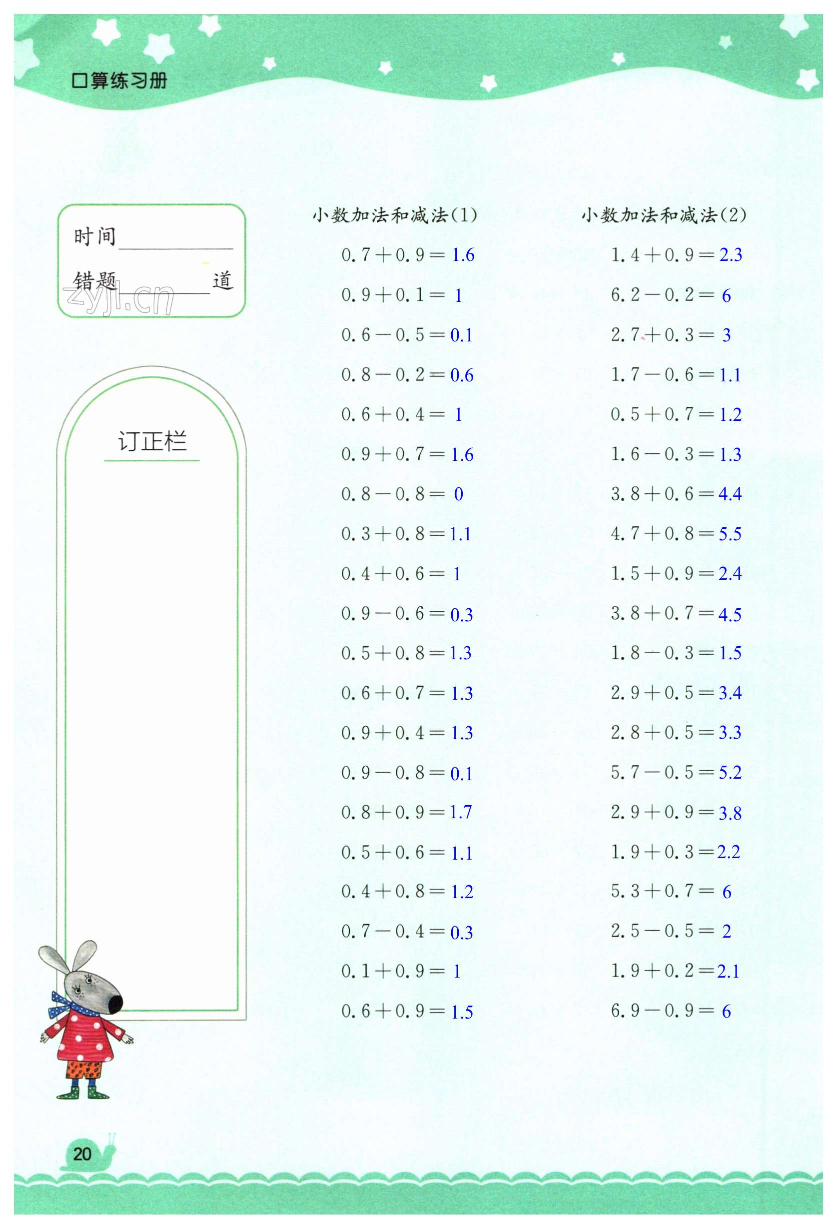 2023年口算练习册江苏凤凰教育出版社五年级数学上册苏教版