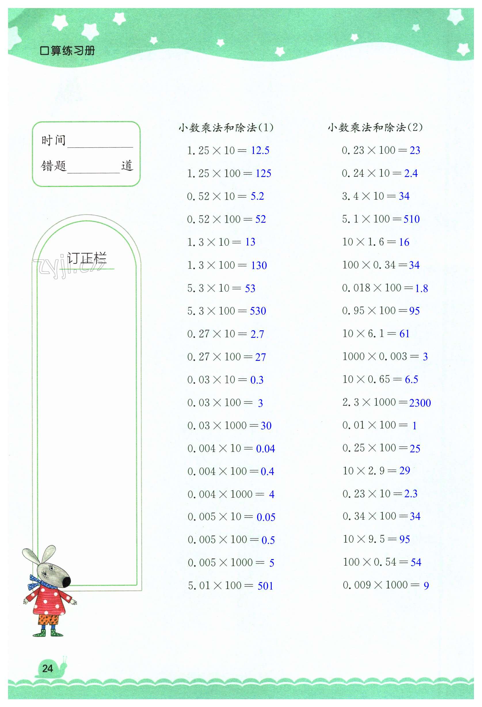 2023年口算练习册江苏凤凰教育出版社五年级数学上册苏教版