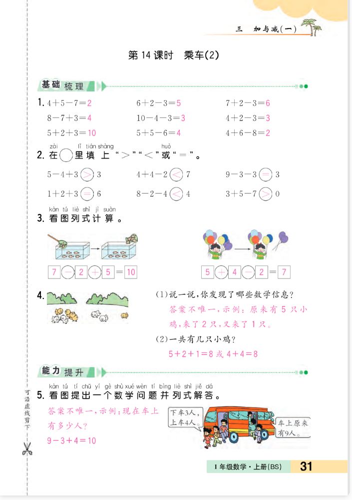 注:目前有些书本章节名称可能整理的还不是很完善,但都是按照顺序排列的,请同学们按照顺序仔细查找。练习册 2023年一课3练培优作业本一年级数学上册北师大版福建专版 答案主要是用来给同学们做完题方便对答案用的,请勿直接抄袭。
