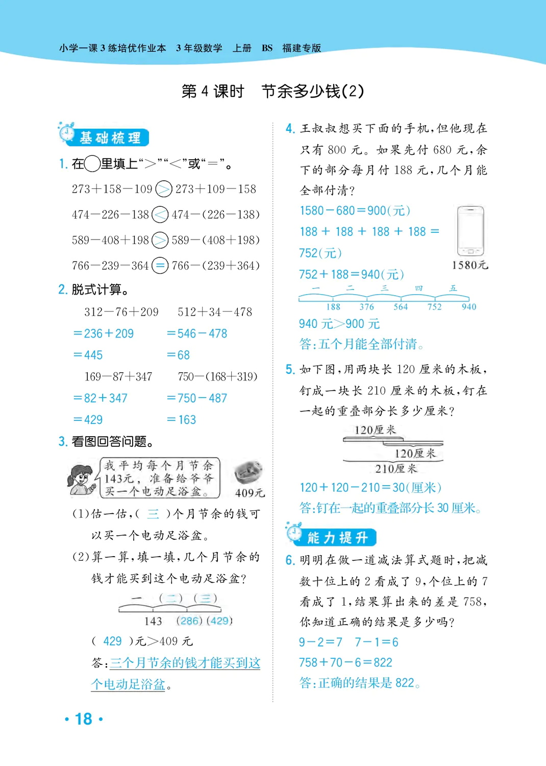 注:目前有些书本章节名称可能整理的还不是很完善,但都是按照顺序排列的,请同学们按照顺序仔细查找。练习册 2023年一课3练培优作业本三年级数学上册北师大版福建专版 答案主要是用来给同学们做完题方便对答案用的,请勿直接抄袭。
