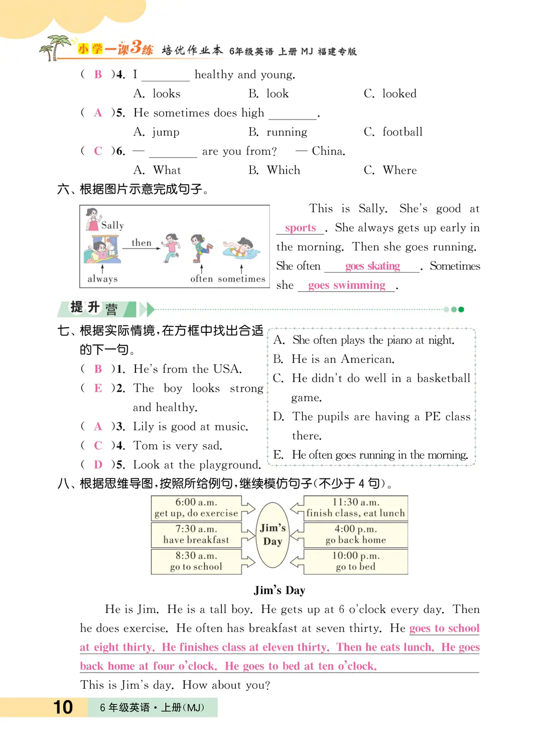注:目前有些书本章节名称可能整理的还不是很完善,但都是按照顺序排列的,请同学们按照顺序仔细查找。练习册 2023年一课3练培优作业本六年级英语上册闽教版福建专版 答案主要是用来给同学们做完题方便对答案用的,请勿直接抄袭。