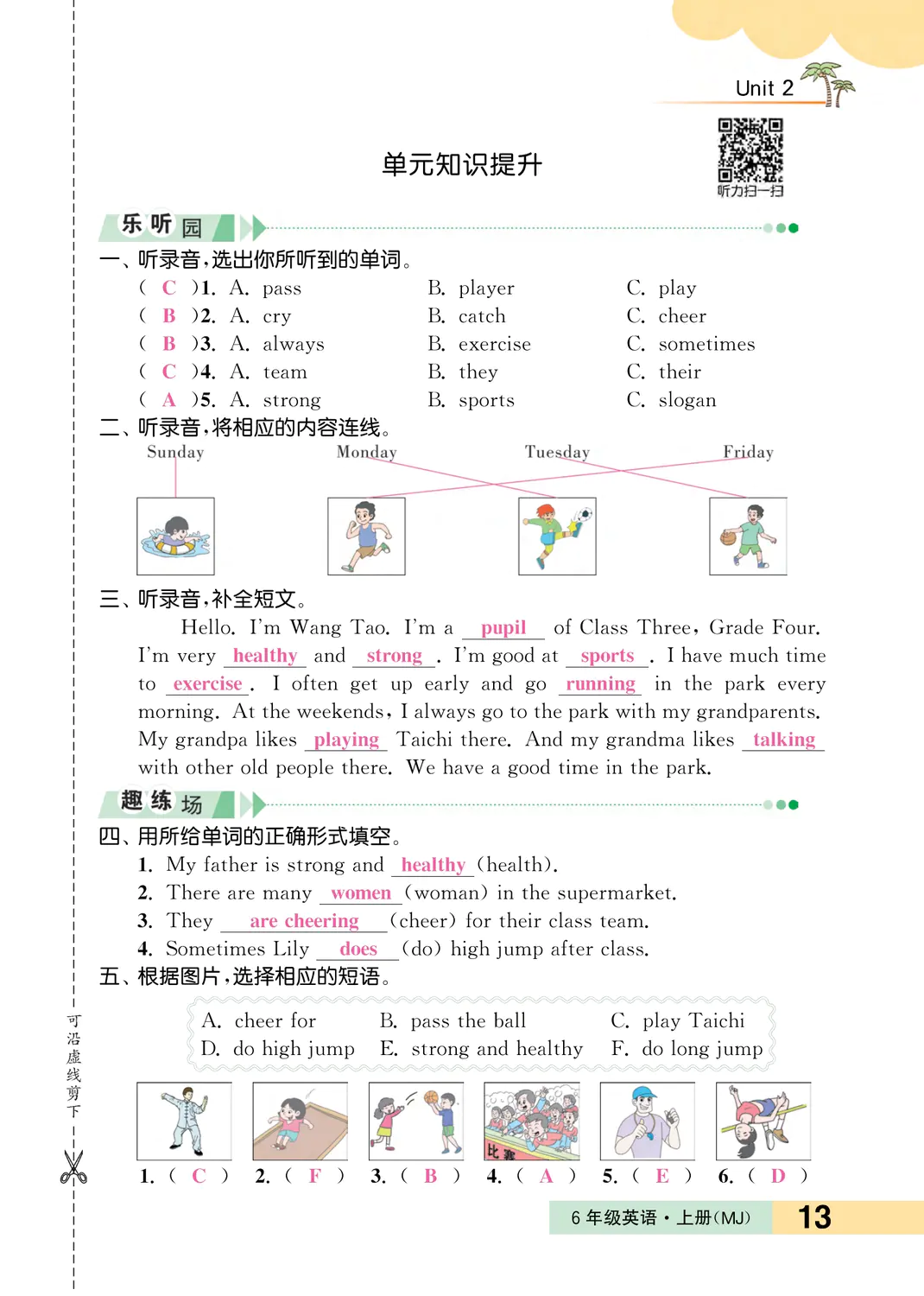 注:目前有些书本章节名称可能整理的还不是很完善,但都是按照顺序排列的,请同学们按照顺序仔细查找。练习册 2023年一课3练培优作业本六年级英语上册闽教版福建专版 答案主要是用来给同学们做完题方便对答案用的,请勿直接抄袭。