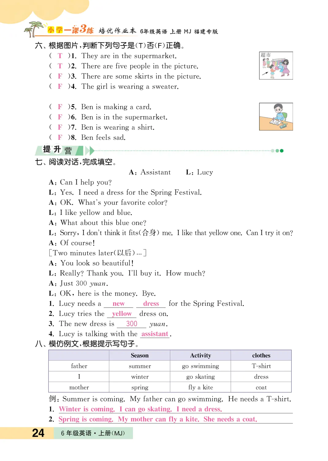 注:目前有些书本章节名称可能整理的还不是很完善,但都是按照顺序排列的,请同学们按照顺序仔细查找。练习册 2023年一课3练培优作业本六年级英语上册闽教版福建专版 答案主要是用来给同学们做完题方便对答案用的,请勿直接抄袭。