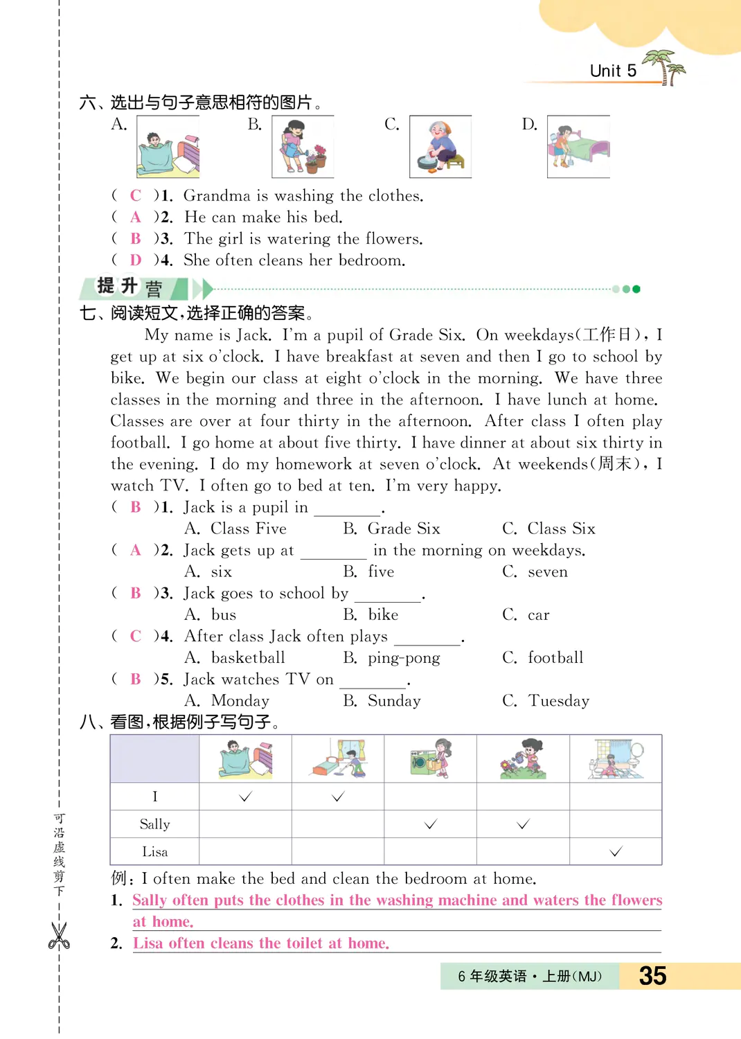 注:目前有些书本章节名称可能整理的还不是很完善,但都是按照顺序排列的,请同学们按照顺序仔细查找。练习册 2023年一课3练培优作业本六年级英语上册闽教版福建专版 答案主要是用来给同学们做完题方便对答案用的,请勿直接抄袭。