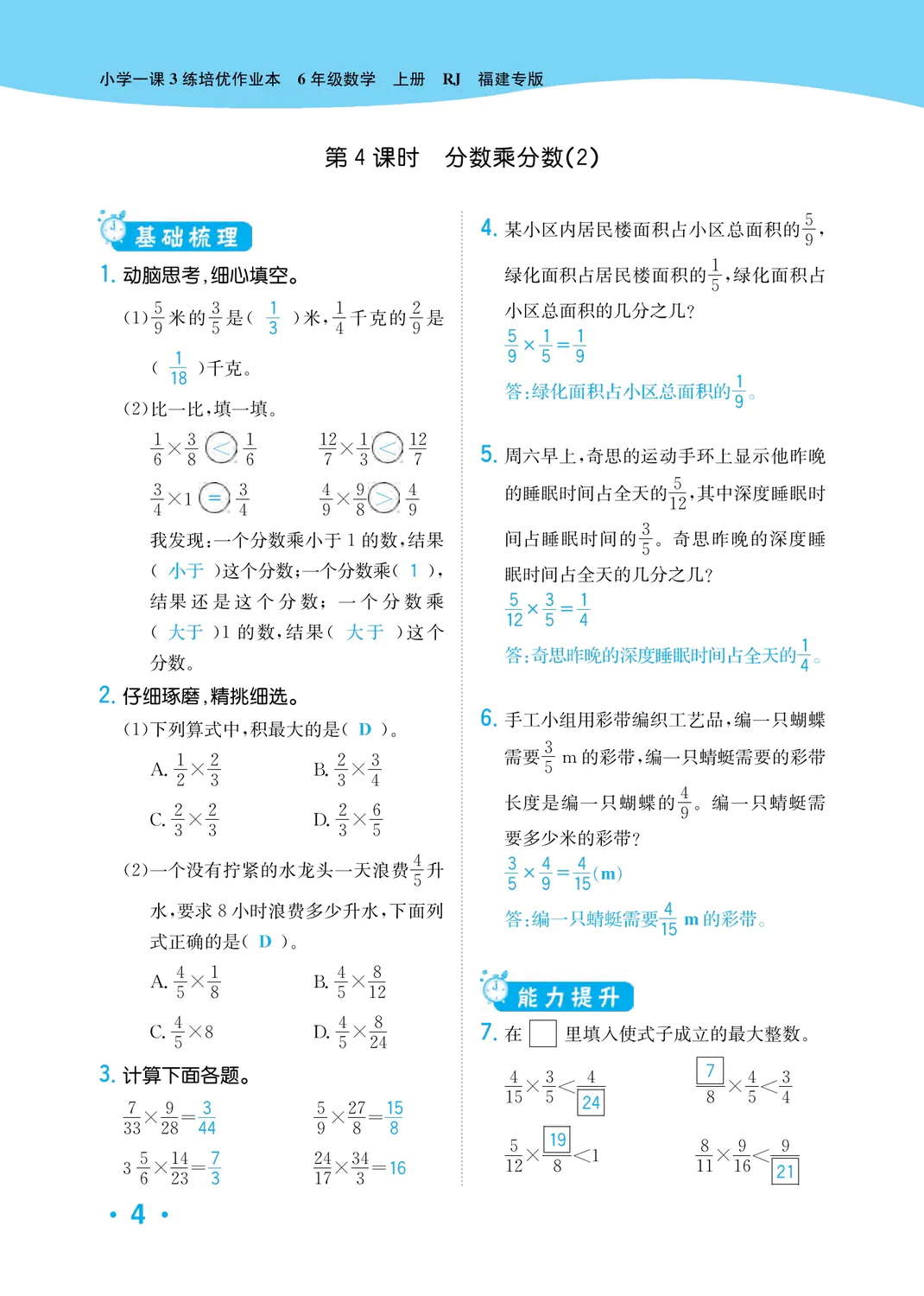 注:目前有些书本章节名称可能整理的还不是很完善,但都是按照顺序排列的,请同学们按照顺序仔细查找。练习册 2023年一课3练培优作业本六年级数学上册人教版福建专版 答案主要是用来给同学们做完题方便对答案用的,请勿直接抄袭。