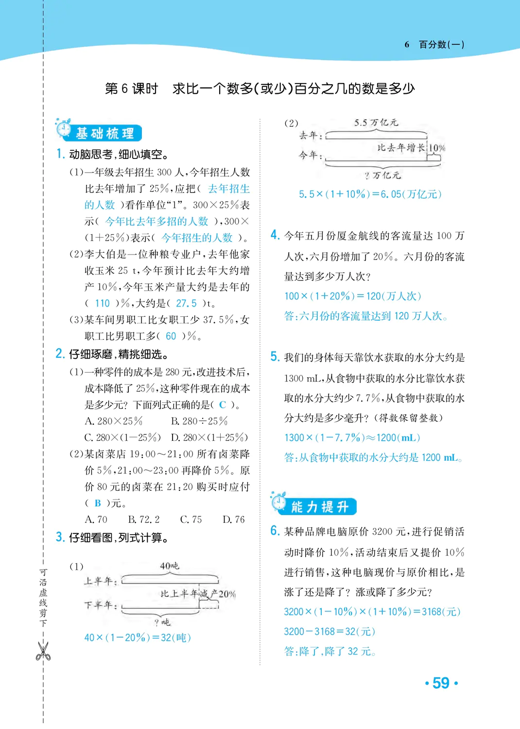 注:目前有些书本章节名称可能整理的还不是很完善,但都是按照顺序排列的,请同学们按照顺序仔细查找。练习册 2023年一课3练培优作业本六年级数学上册人教版福建专版 答案主要是用来给同学们做完题方便对答案用的,请勿直接抄袭。