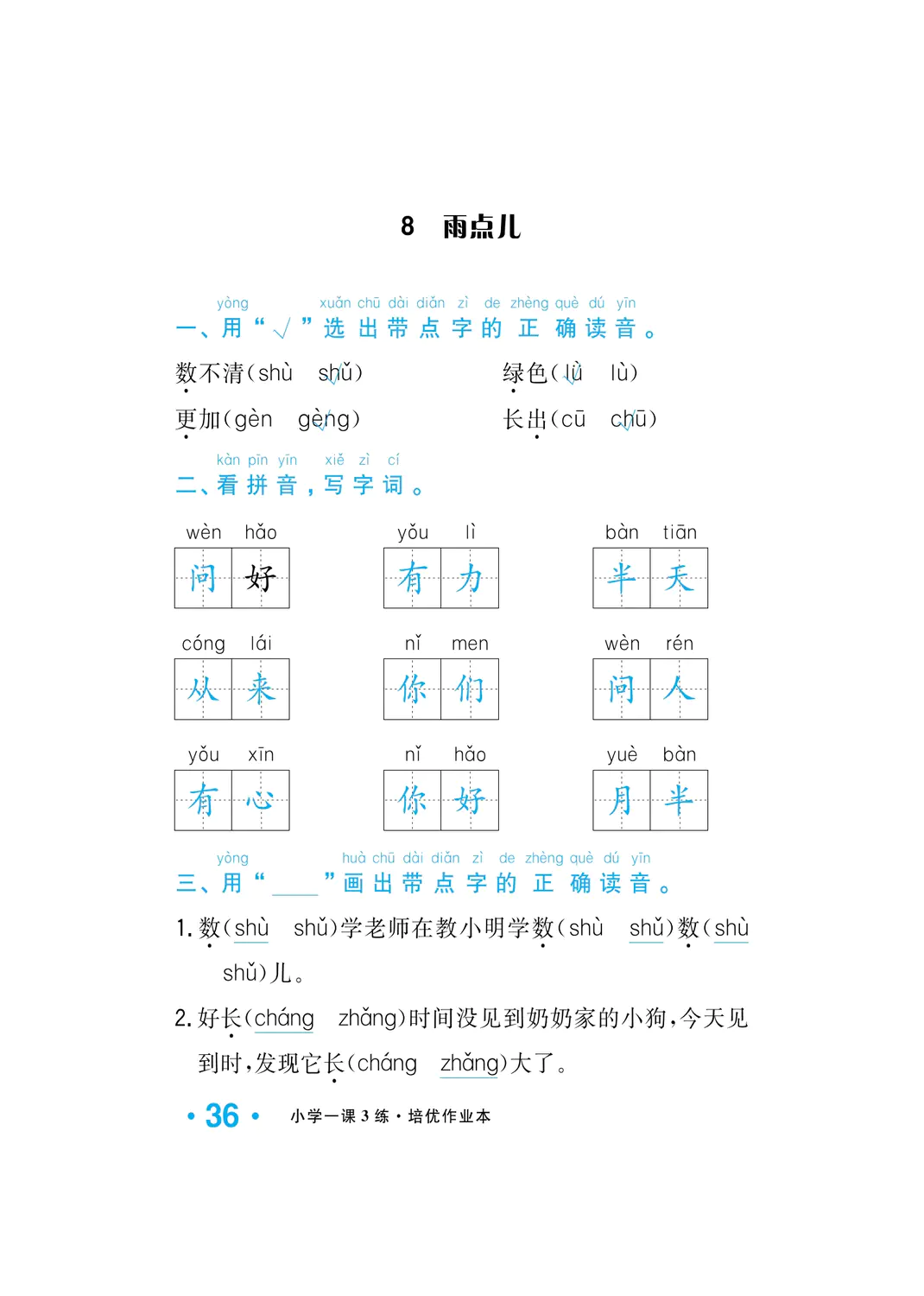 注:目前有些书本章节名称可能整理的还不是很完善,但都是按照顺序排列的,请同学们按照顺序仔细查找。练习册 2023年一课3练培优作业本一年级语文上册人教版福建专版 答案主要是用来给同学们做完题方便对答案用的,请勿直接抄袭。