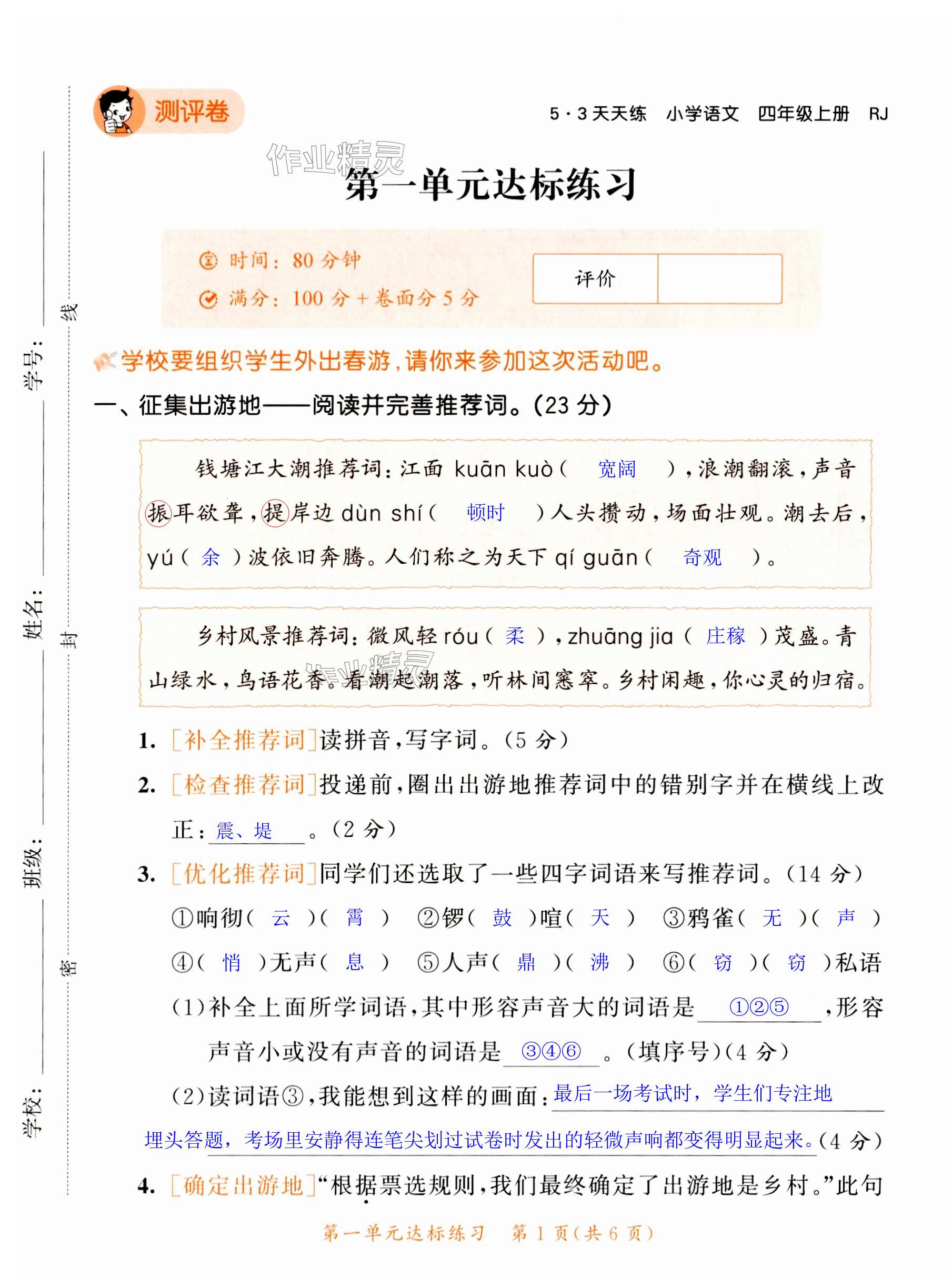 注:目前有些书本章节名称可能整理的还不是很完善,但都是按照顺序排列的,请同学们按照顺序仔细查找。练习册 2023年53天天练四年级语文上册人教版 答案主要是用来给同学们做完题方便对答案用的,请勿直接抄袭。
