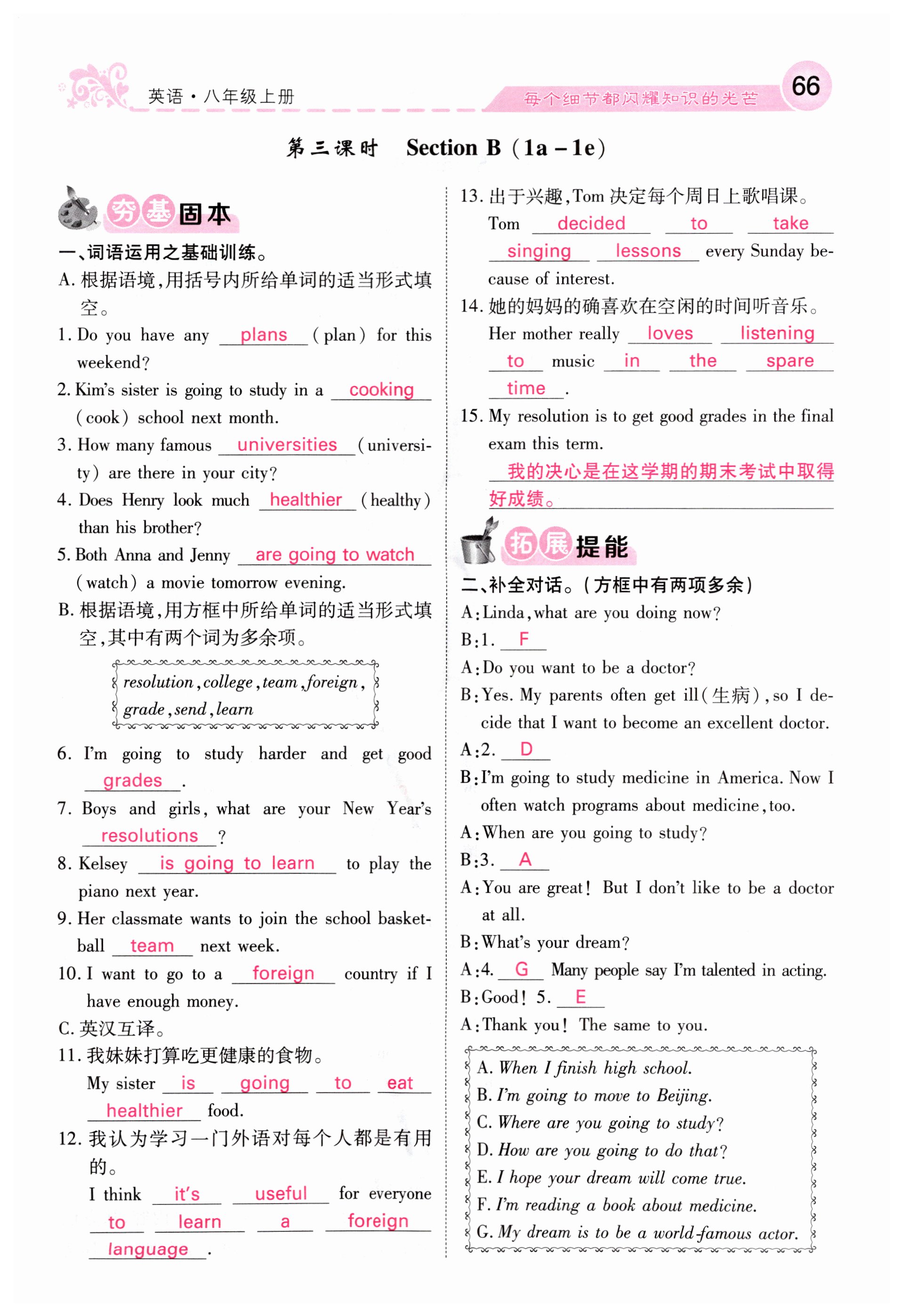 注:目前有些书本章节名称可能整理的还不是很完善,但都是按照顺序排列的,请同学们按照顺序仔细查找。练习册 2023年课堂点睛八年级英语上册人教版山西专版 答案主要是用来给同学们做完题方便对答案用的,请勿直接抄袭。