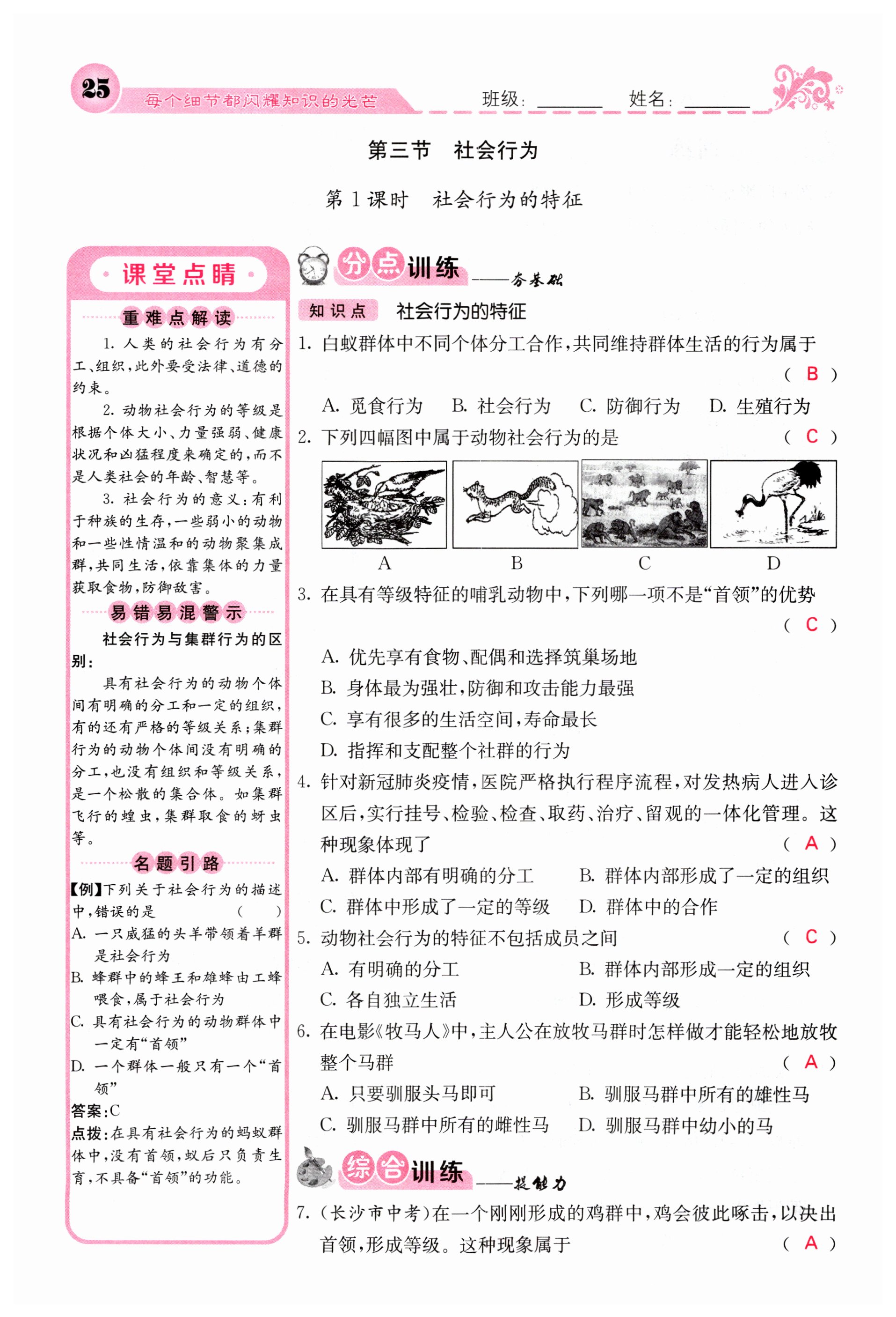 注:目前有些书本章节名称可能整理的还不是很完善,但都是按照顺序排列的,请同学们按照顺序仔细查找。练习册 2023年课堂点睛八年级生物上册人教版 答案主要是用来给同学们做完题方便对答案用的,请勿直接抄袭。
