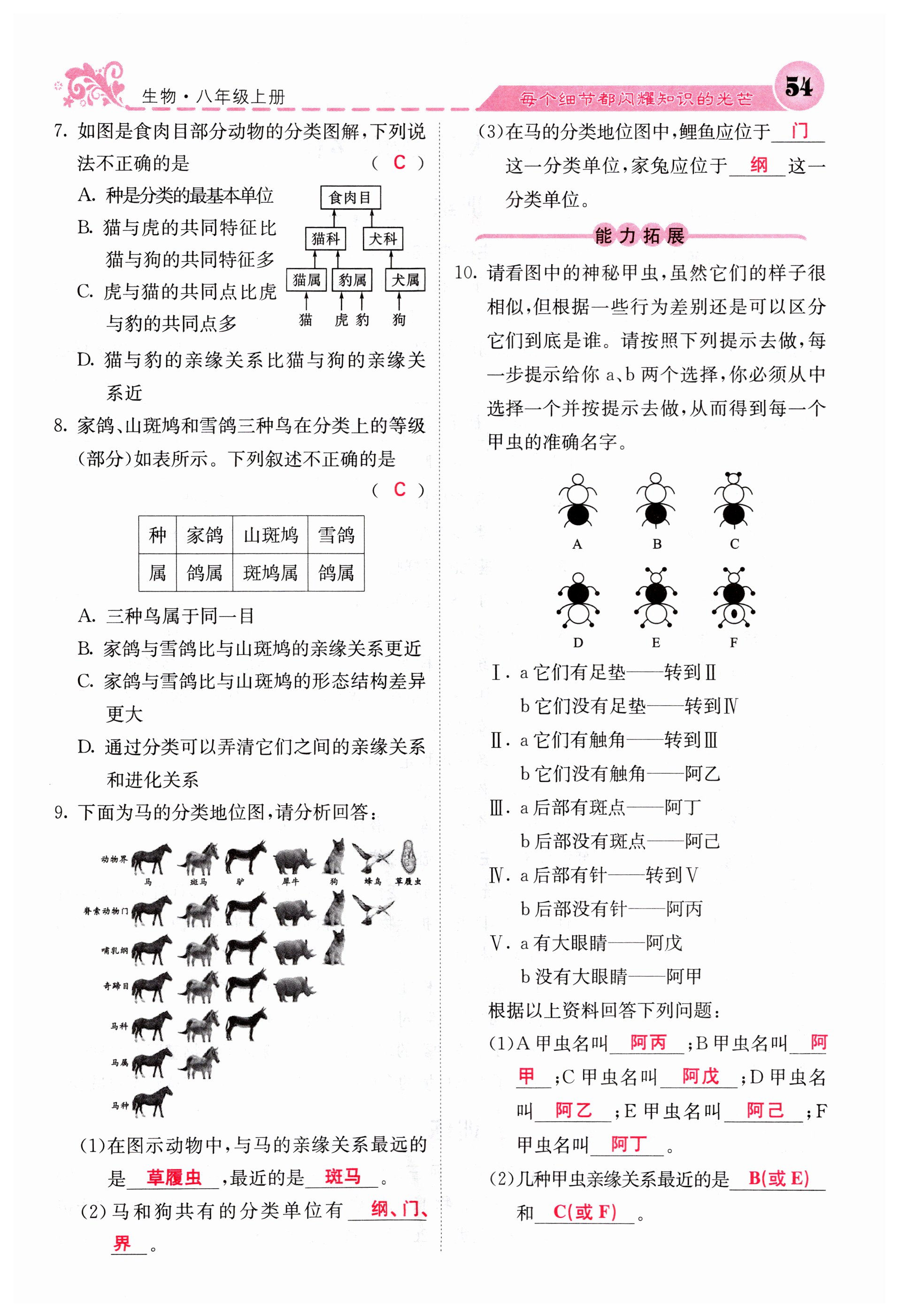 注:目前有些书本章节名称可能整理的还不是很完善,但都是按照顺序排列的,请同学们按照顺序仔细查找。练习册 2023年课堂点睛八年级生物上册人教版 答案主要是用来给同学们做完题方便对答案用的,请勿直接抄袭。