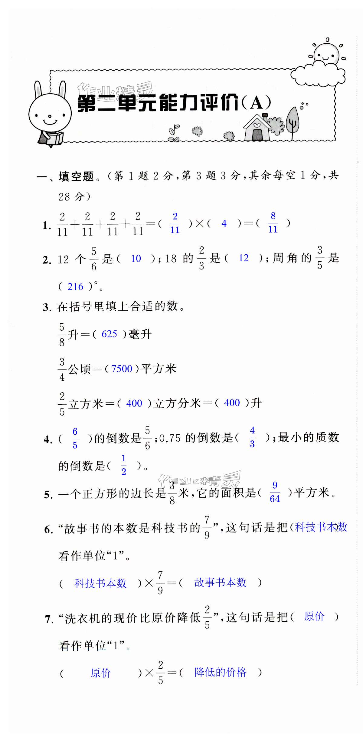 注:目前有些书本章节名称可能整理的还不是很完善,但都是按照顺序排列的,请同学们按照顺序仔细查找。练习册 2023年配套单元评价六年级数学上册苏教版 答案主要是用来给同学们做完题方便对答案用的,请勿直接抄袭。