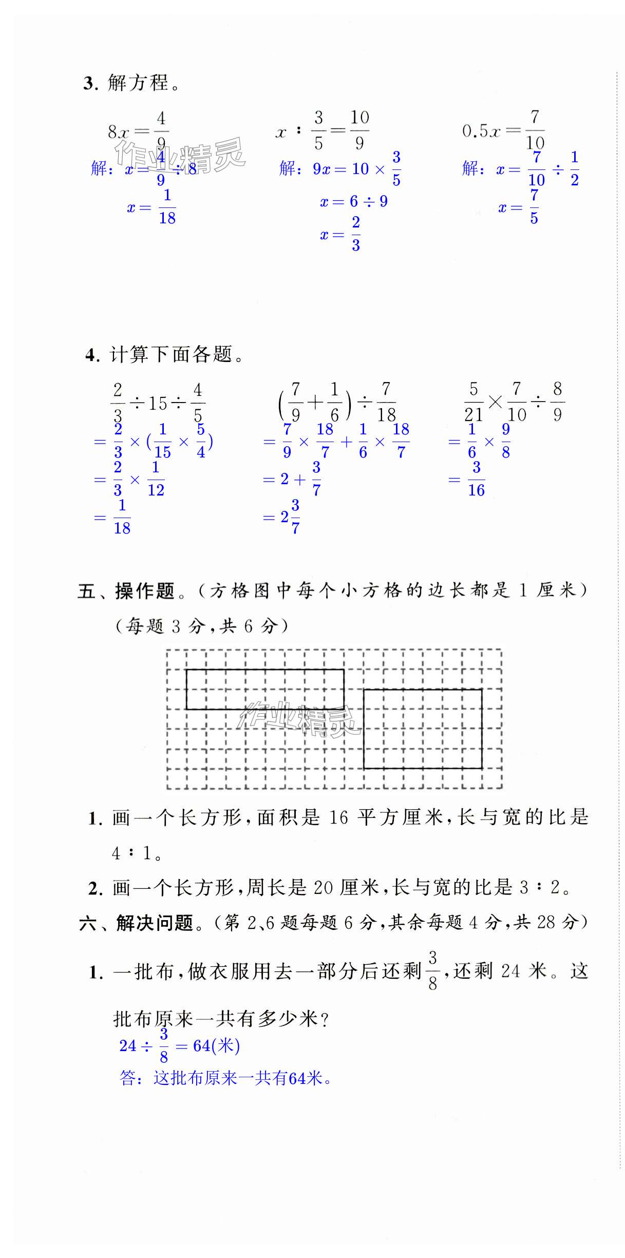 注:目前有些书本章节名称可能整理的还不是很完善,但都是按照顺序排列的,请同学们按照顺序仔细查找。练习册 2023年配套单元评价六年级数学上册苏教版 答案主要是用来给同学们做完题方便对答案用的,请勿直接抄袭。
