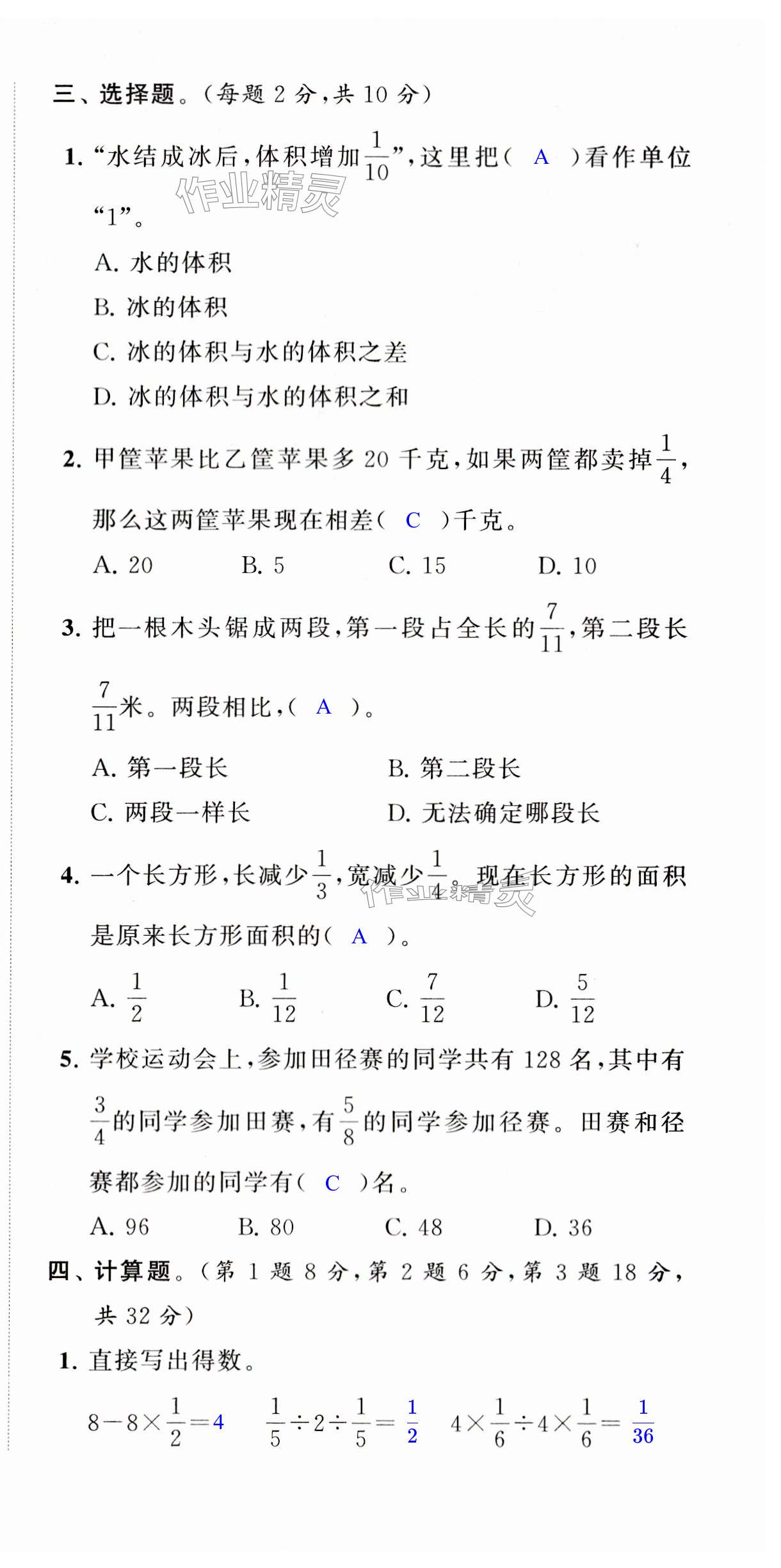 注:目前有些书本章节名称可能整理的还不是很完善,但都是按照顺序排列的,请同学们按照顺序仔细查找。练习册 2023年配套单元评价六年级数学上册苏教版 答案主要是用来给同学们做完题方便对答案用的,请勿直接抄袭。