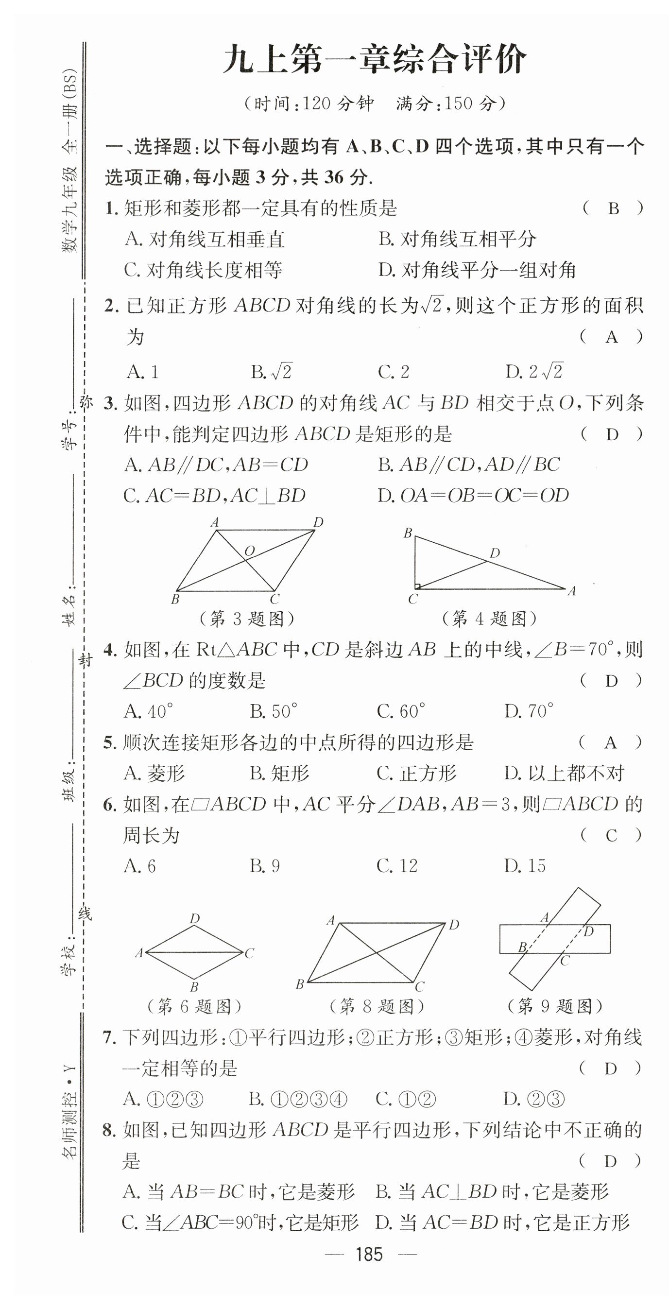 注:目前有些书本章节名称可能整理的还不是很完善,但都是按照顺序排列的,请同学们按照顺序仔细查找。练习册 2023年名师测控九年级数学全一册北师大版贵州专版 答案主要是用来给同学们做完题方便对答案用的,请勿直接抄袭。